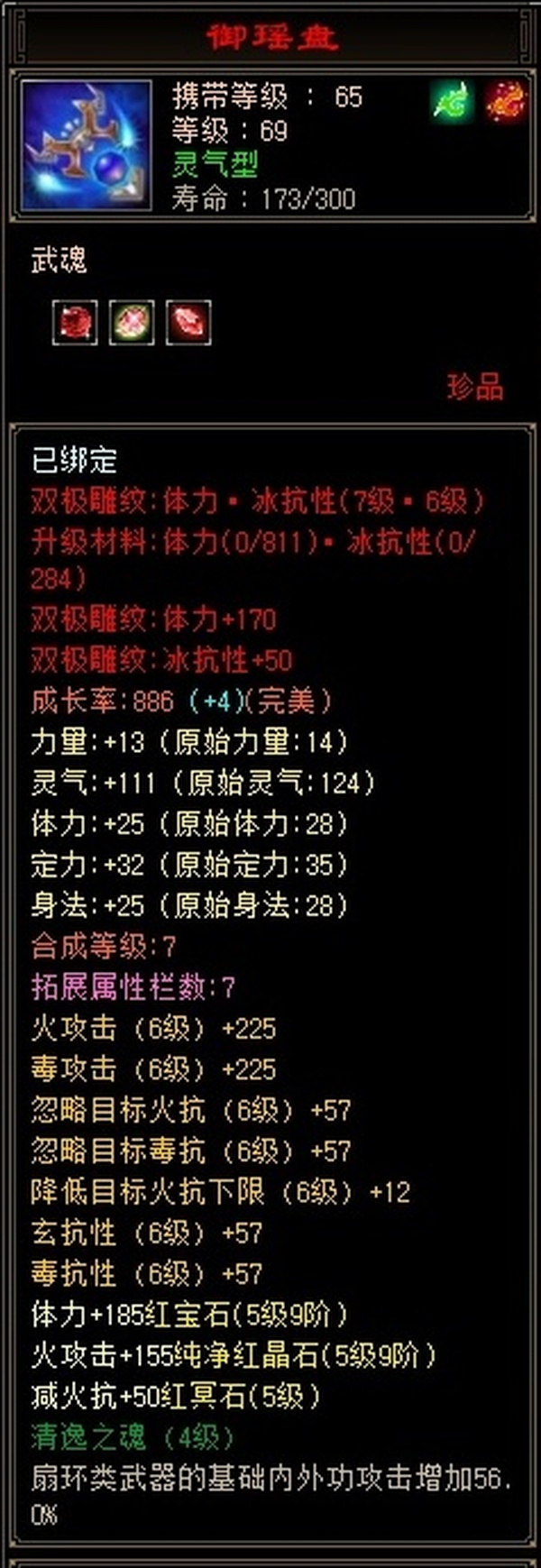 本区卡级第一逍遥,满5.9体满5.9属, 天雕全(包含属性、体力、身法),满图鉴,最新活动心魔图鉴已有。背包内额外赠送YB实时变化目前还有3万多YB,别人卖号都是货币全清理干净,自己掂量。 面板很给力,8星神器,神器火属性极限112 。 同等配置这个价格找不到第二个。 仓库和背包各种宝石各种珍兽技能书全在, 都留给买家,宝石可以看图有很多。 全游戏全服全区对比,这个号也能排前列。 BB附体、攻击、体力都有,都是极品BB。 其他看图,第一逍遥没啥好说的。 69级能付费购买的都齐全了, 时装、幻视都有,本周最新出的活动赠送的几万YB够你爽玩的。低保付费活动的话赠送的几万YB够未来一年。