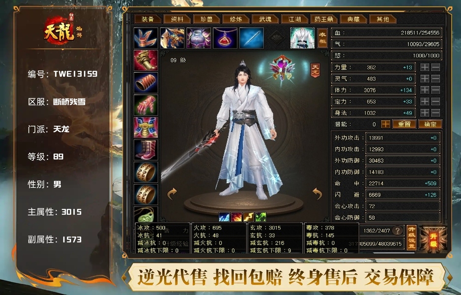 时间比较少没啥时间玩了可小刀5体5属天龙通刷一切副本