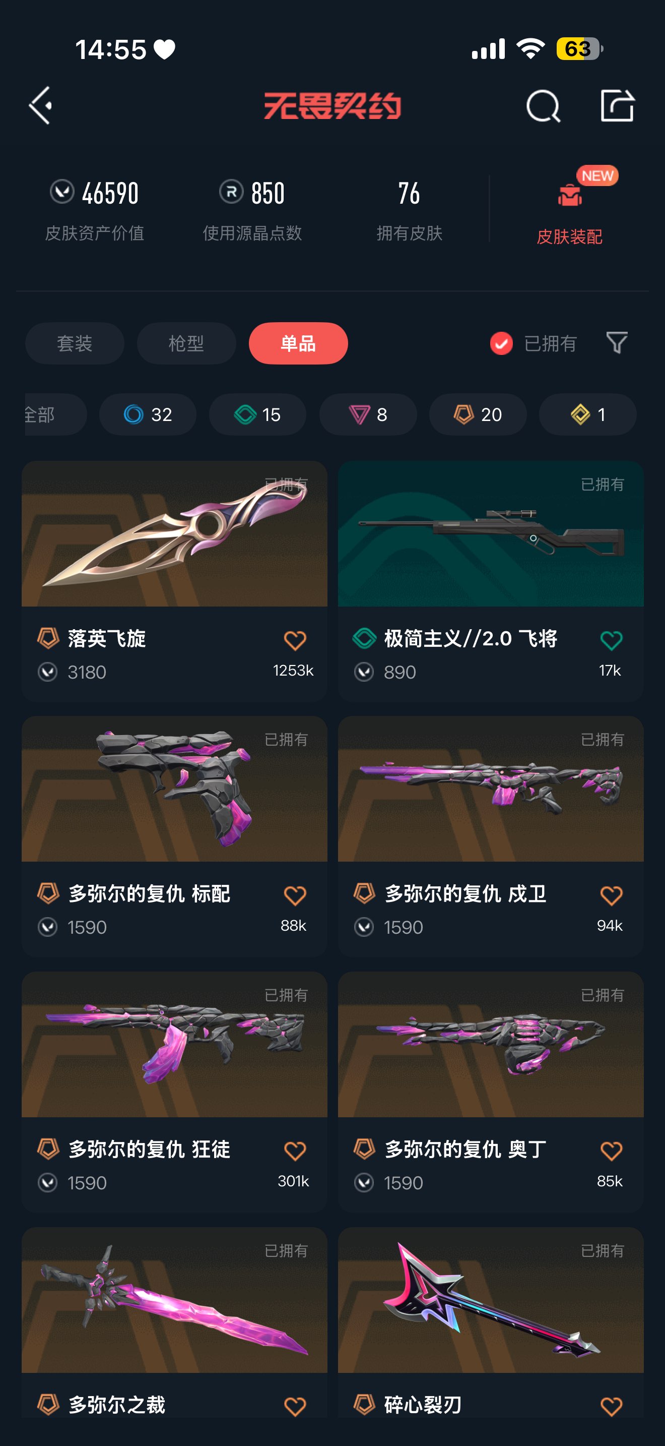 【WEI20057】 | 白银 | 皮肤资产价值:46590 | 侦察力量蝴蝶刀,多弥尔之裁,碎心裂刃,诡秘蛇影军刀,日耀风暴遗器,神圣领域战刀,神之刃,落英飞旋,VCT2025爪刀 | 多弥尔的复仇标配,VCT25xEDG标配,折光棱晶标配 | RGX11zPro2.0幻影,神中神罚幻影,日耀风暴幻影,侦察力量幻影,神圣领域幻影,末日之翼幻影 | 盖亚的复仇狂徒,诡秘蛇影狂徒,离子武器2.0狂徒,塑水宗狂徒,日冕雄师狂徒,创·纪元狂徒 | 月球哨兵正义,光明哨兵正义 | 诡秘蛇影鬼魅,甜蜜战术鬼魅,星云暗涌鬼魅 | 甜蜜战术冥驹 | 日耀风暴奥丁,末日之翼奥丁 | 月球哨兵戍卫,折光棱晶戍卫,甜蜜战术戍卫 | 幻语魔咒獠犬,神圣领域獠犬 | 月球哨兵莽侠,神中神罚莽侠,诡秘蛇影莽侠 | 诡秘蛇影判官,甜蜜战术判官,上古龙炎判官 | 神中神罚骇灵,星云暗涌骇灵 | 折光棱晶蜂刺 | 末日之翼短炮,混沌序曲短炮 | 奇点战神,神圣领域战神 | 末日之翼飞将,幻语魔咒飞将,极简主义2.0飞将 | 幻语魔咒雄鹿,月球哨兵雄鹿 | 幻语魔咒狂怒,神圣领域狂怒,神中神罚狂怒 | 【买号找回永久包赔】
