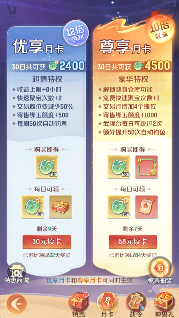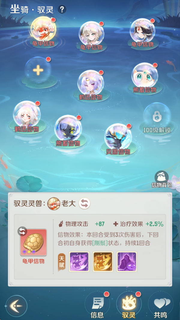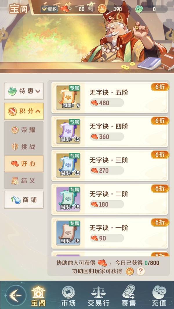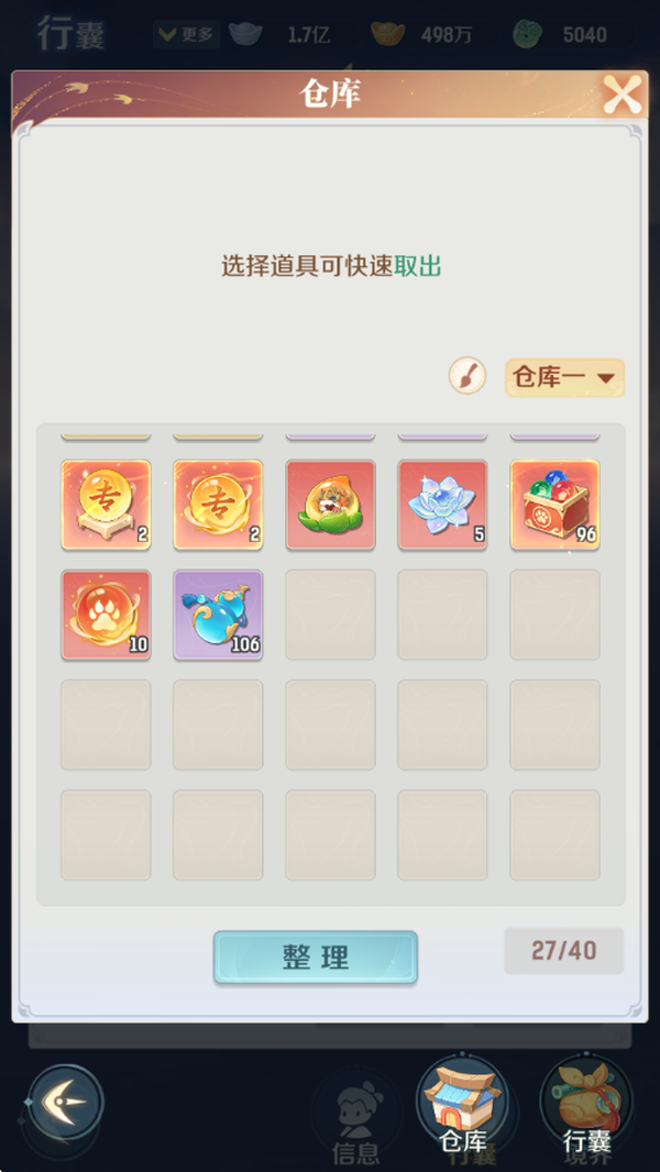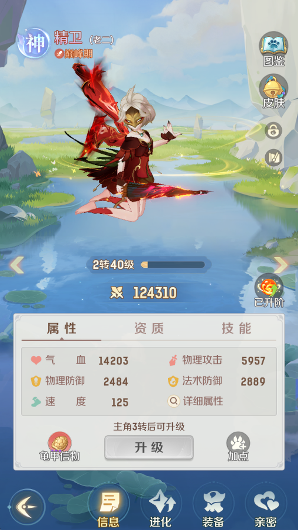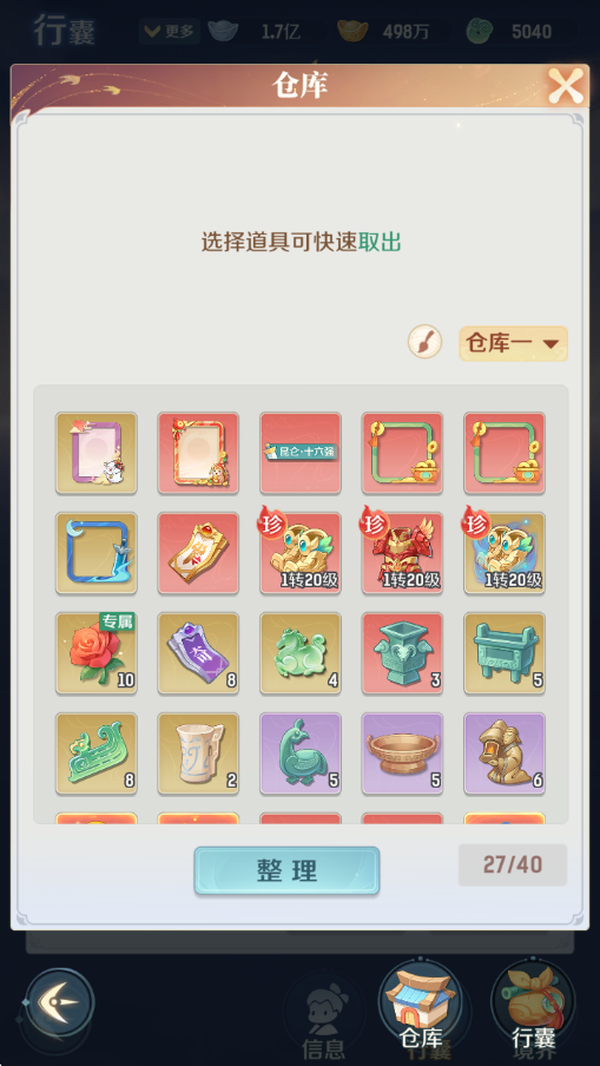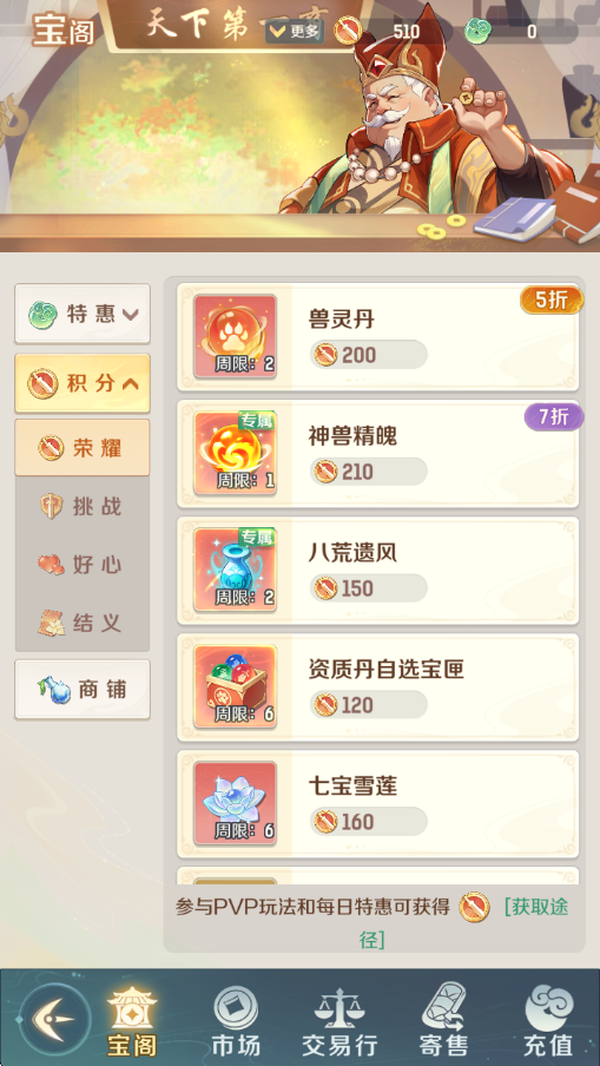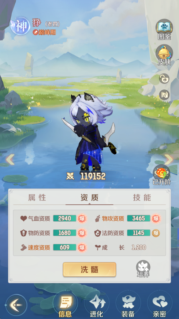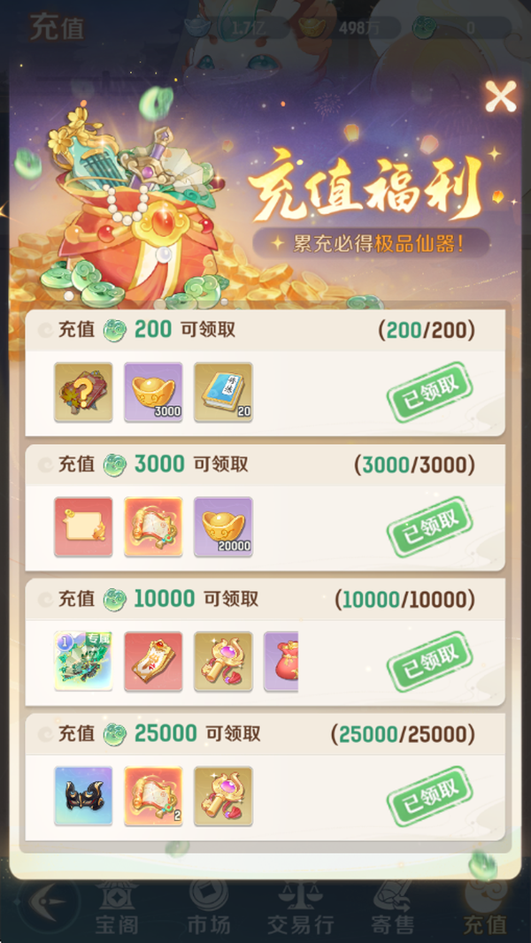 - 资源:有500万元宝 背包(高级书、宝石、八荒、神兽丹)可以卖近200万元宝 - 神兽:4只进阶+觉醒(猴子/精卫/画中仙/狰) 心法命中特效,有固定队可以直接跟队。 - 装备:8件3阶仙器 特技:晶清+罗汉+群盾 特效:愤怒+迅捷+匠心+命中精准