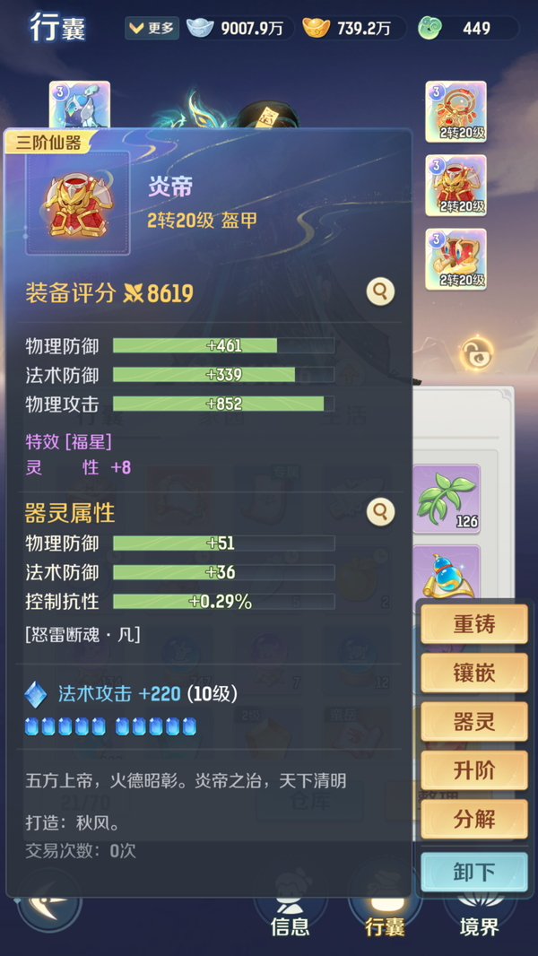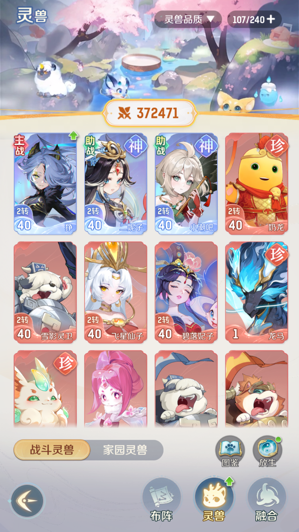【LKP10400】 | 西梁 | 狰,精卫,画中仙 | 等级:337 | 仙器:6 | 貔貅,龙马 | 神兽数量:3 | 角色评分:264536 | 男 | 珍兽数量:4
