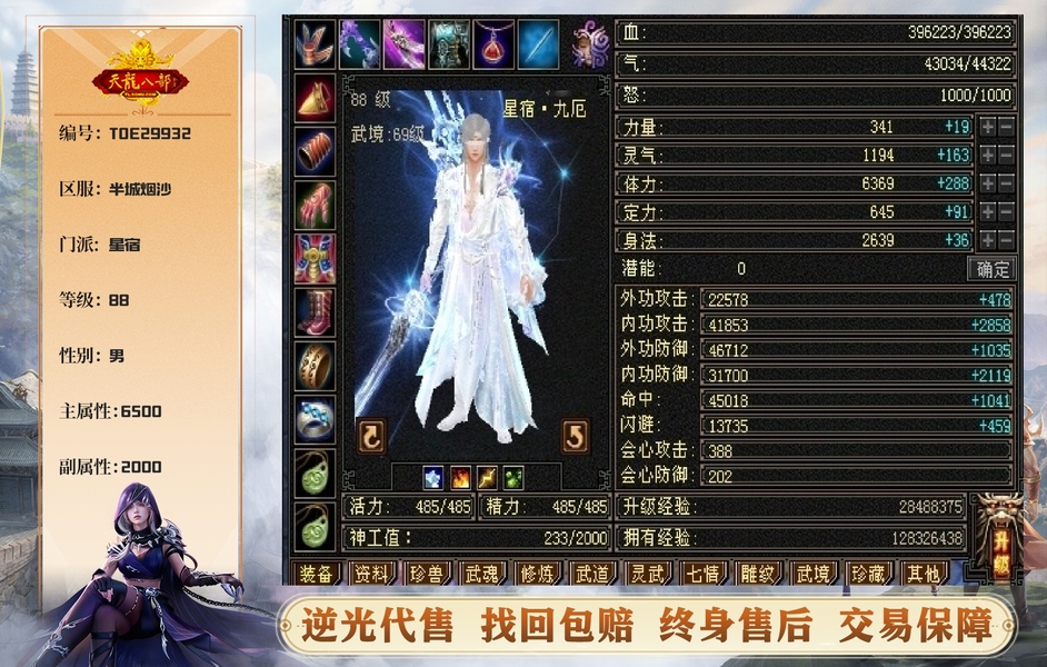 《散打推荐》极限65火炕打手星宿 没有宝宝 裸号出 面板是附体面板 最新面板裸属性6500 40w血
