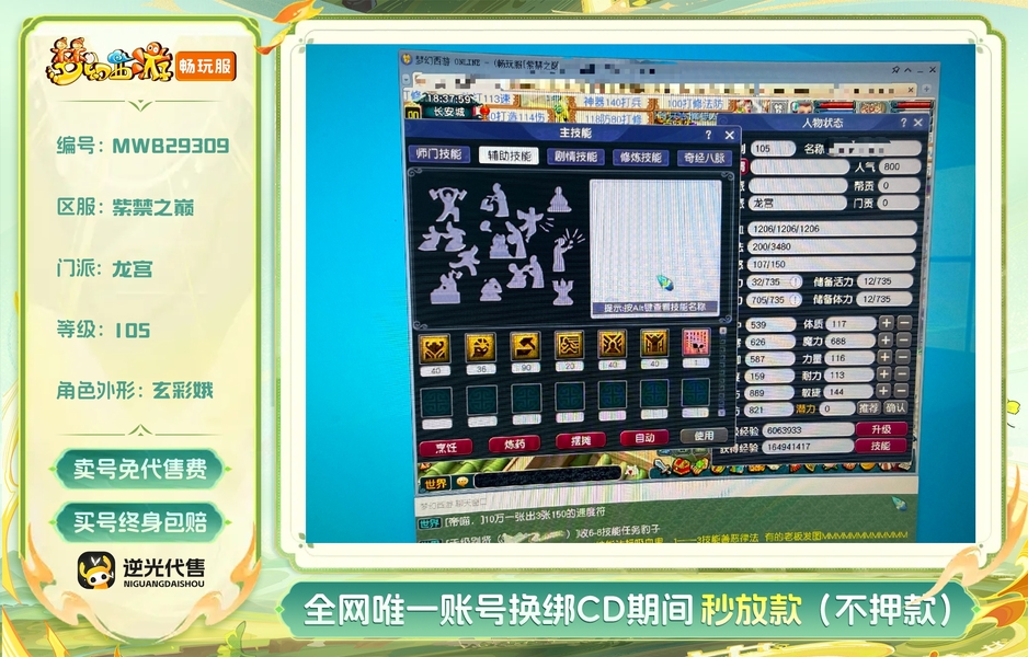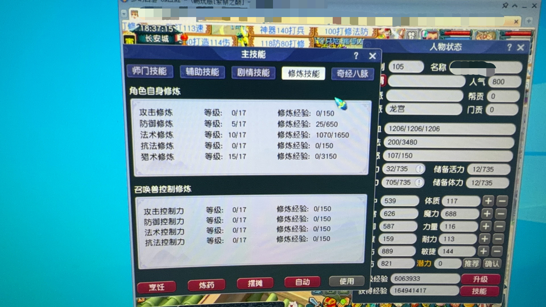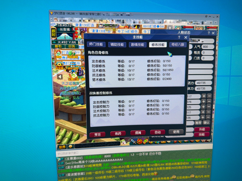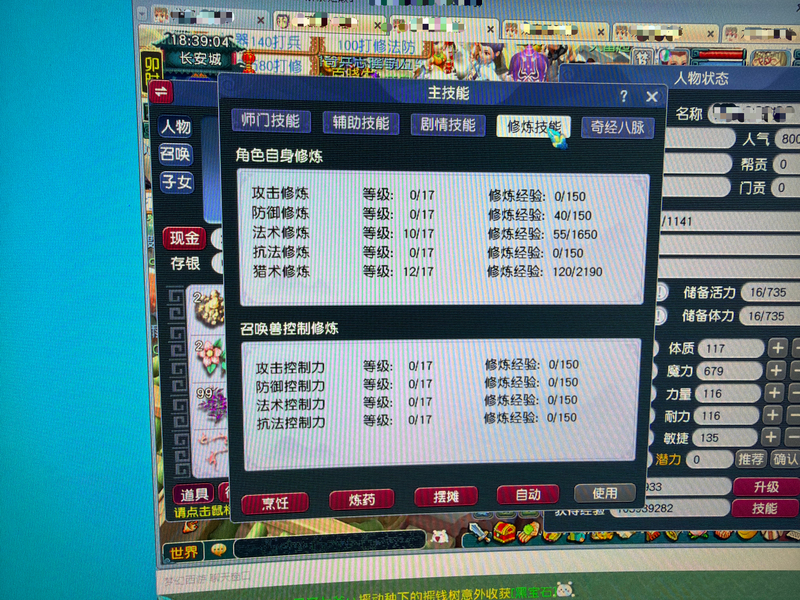 猎术3个号都有15 13 12 法修10,打造90,摆摊修武器,和卖符可以保绿通,楚楚可怜3套,任务宝宝和装备,