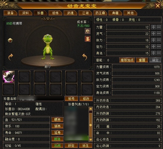 一手号,可以配合上架格子,现在为吃精华的属性