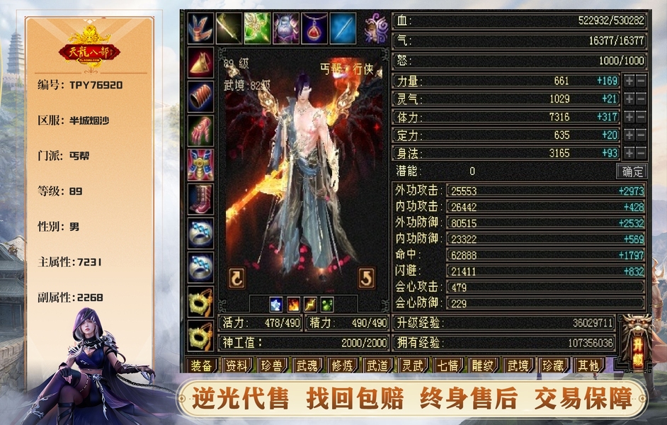 7666骨翼裸53万丐帮无敌丹7666骨翼丐帮无敌丹,坐骑:赤兔,雪猿。三修高属性,打群架没人扛得住。
