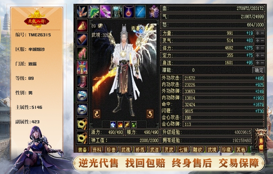 【TME26315】 | 逍遥 | 等级:89 | 主属性:5146 | 副属性:423 | 男 | 主火攻 | VIP5 | 畅游账号