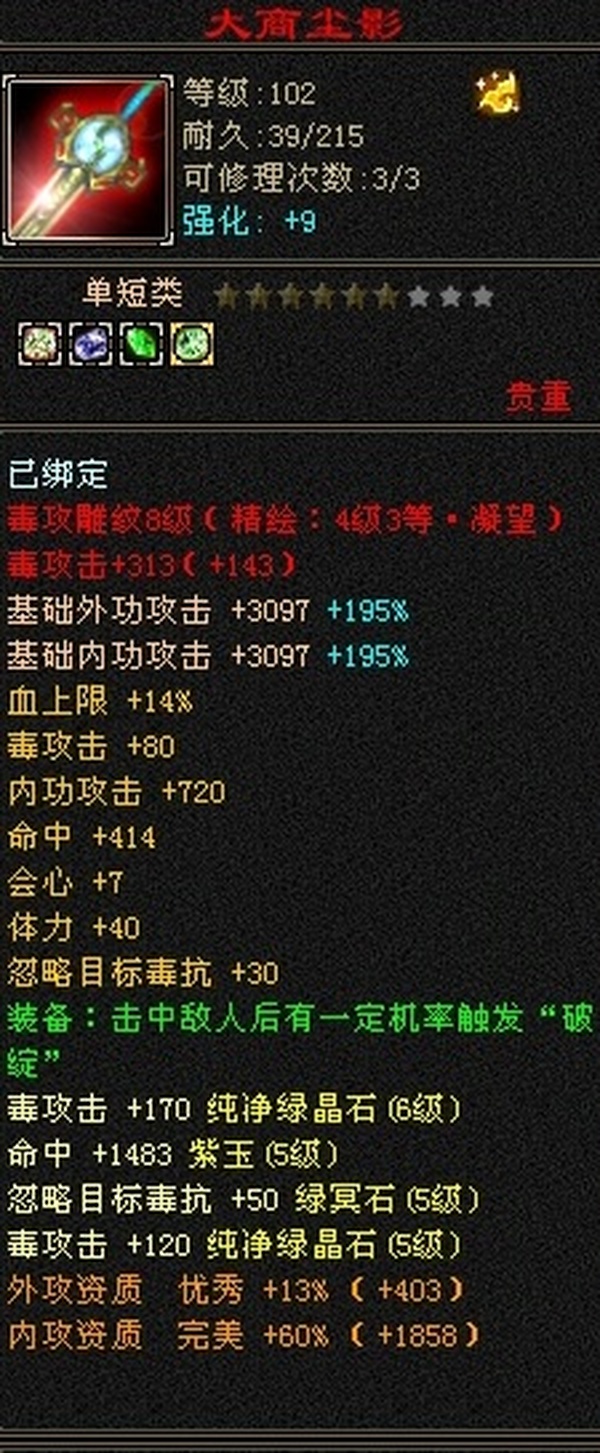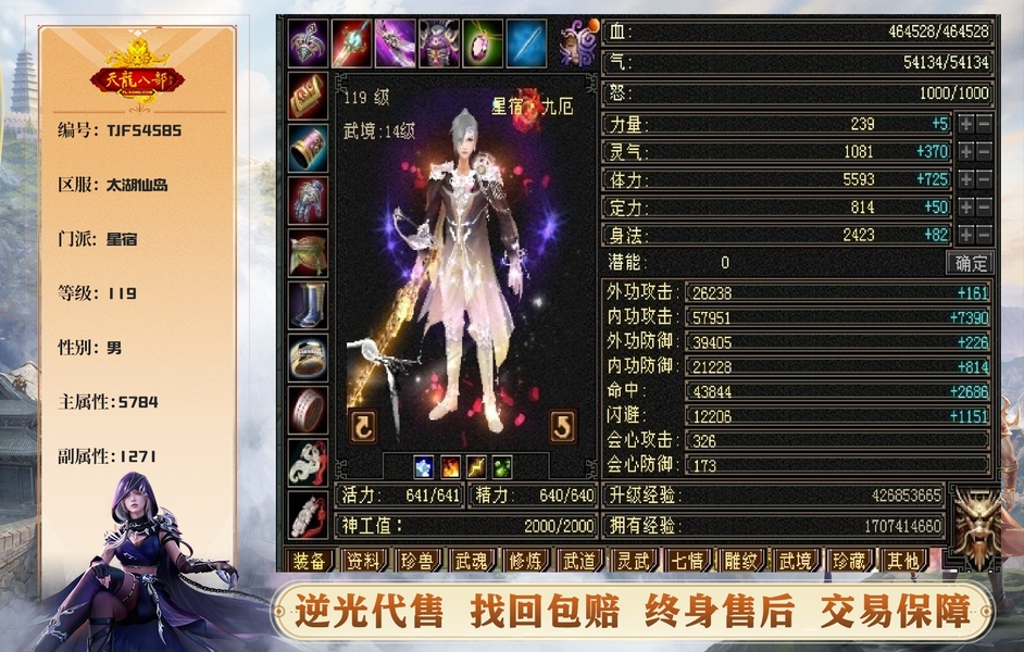 【TJF54585】 | 星宿 | 等级:119 | 主属性:5784 | 副属性:1271 | 男 | 主毒攻 | VIP3 | 畅游账号