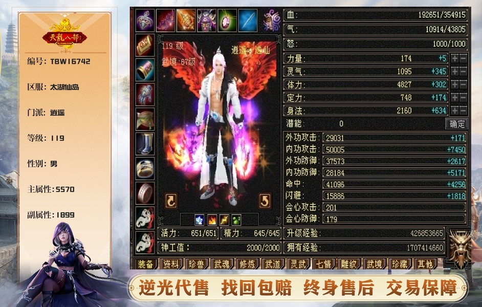 【TBW16742】 | 逍遥 | 等级:119 | 主属性:5570 | 副属性:1899 | 男 | 主火攻 | VIP4 | 畅游账号