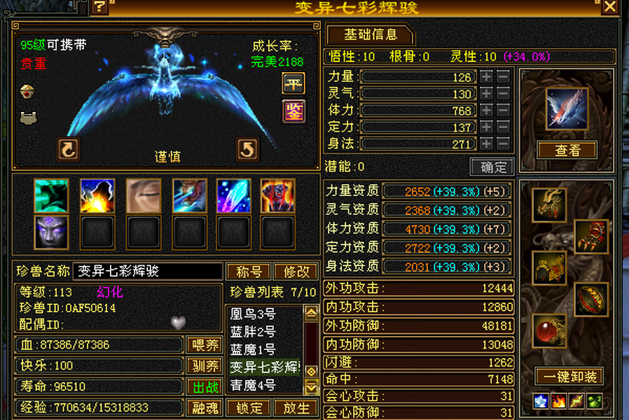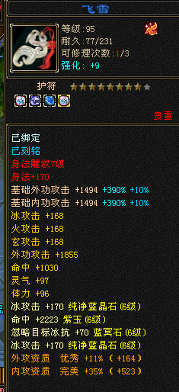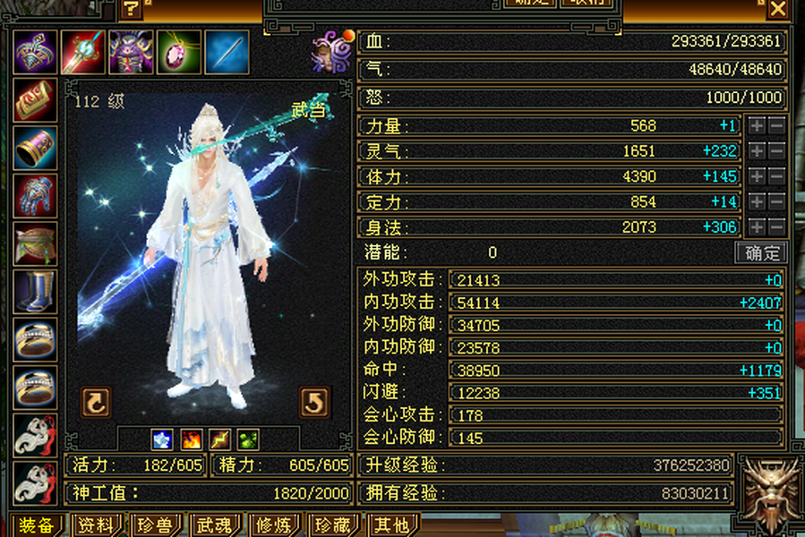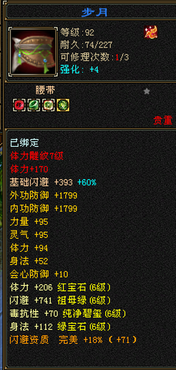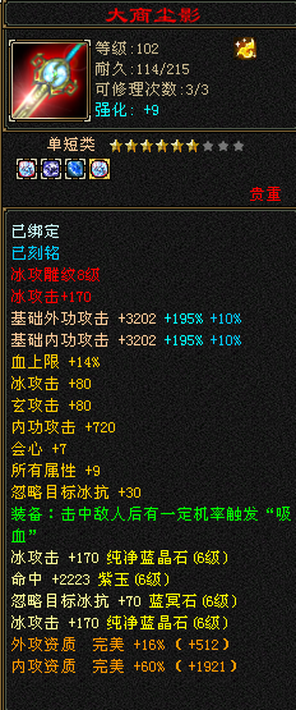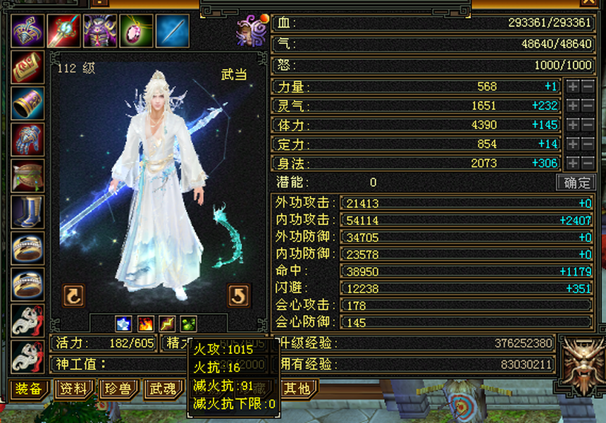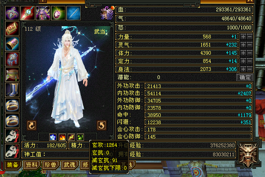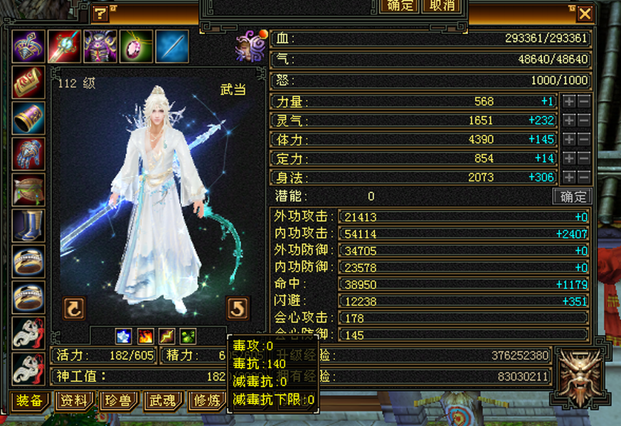 满6极限三修武当,雕文8带7,减抗646,宝宝全带,4900+外攻附体,大完美武魂暗器。 仓库还有一堆外攻笼子。青龙(下周三阶)/幻蝶/双鹤已出 最大的背包及宠物仓库,基本不用更新啥,上来就是干。个人一手号