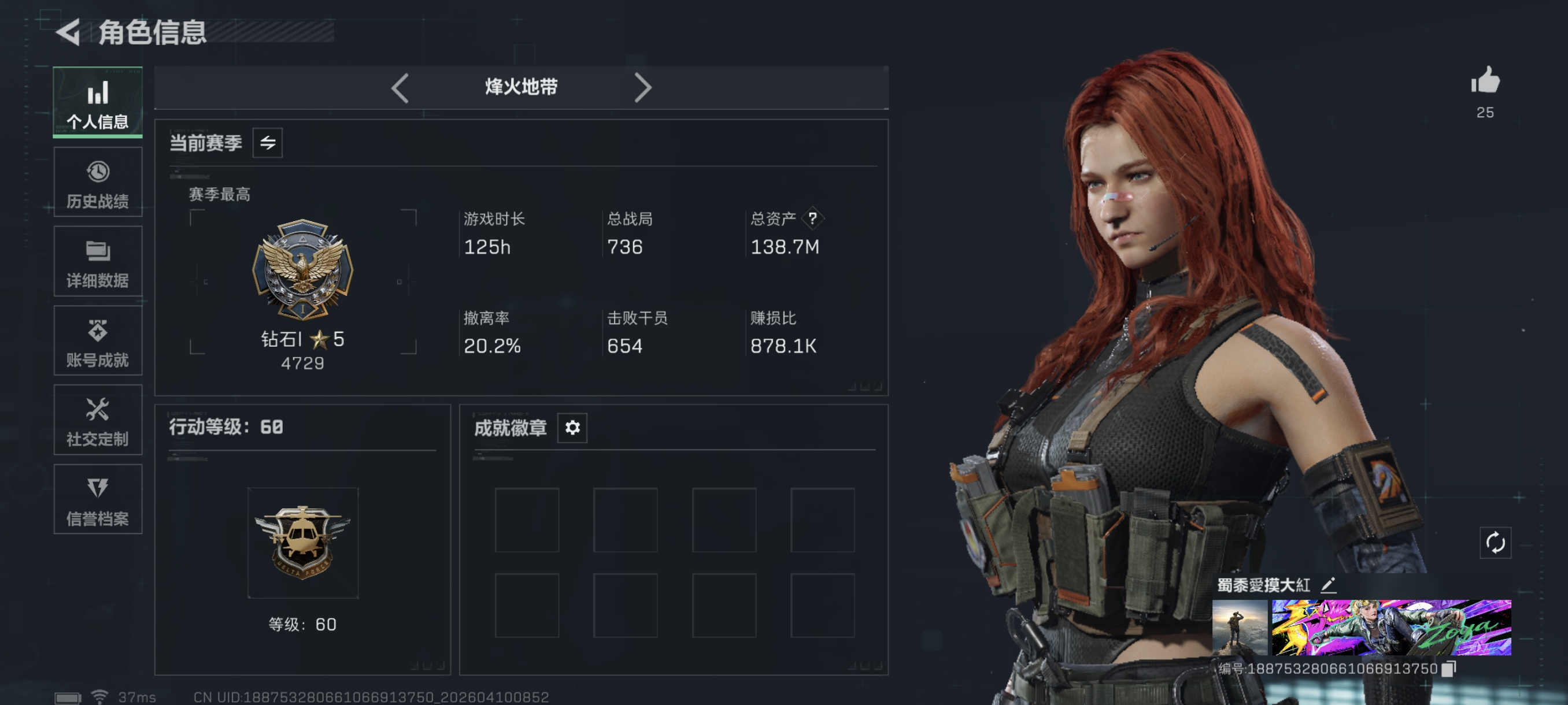 【总资产138.69M 哈弗币20.4万 干员外观2个 烽火60级 钻石】3级处刑者,总资产138M,哈夫币,蛊-不羁人生,乌鲁鲁-荒原猎手,M4A1突击步枪-阿米娅,AUG突击步枪-悠然茶歇,AK-12突击步枪-特斯拉线圈,SCAR-H战斗步枪-启航,腾龙突击步枪-捞点薯条,MK47突