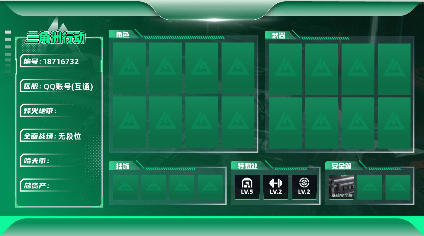 烽火地带段位:无段位 | 战场等级:0 | 行动等级:0 | 总资产:0M | 现有哈夫币:0W