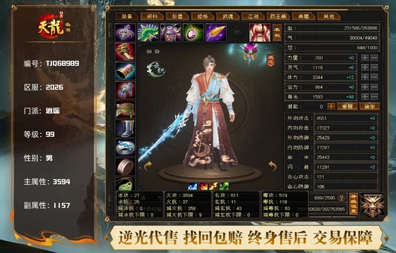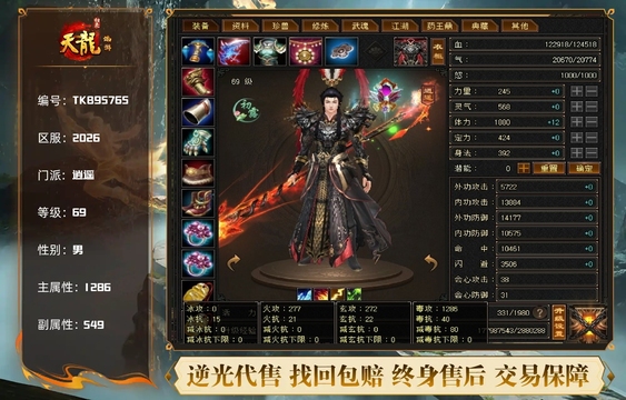 成品5545,总属性7500+,通刷任何副本,上手即玩,天龙技能多,可玩性强,号上还有一万多金