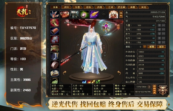【TXY27570】 | 武当 | 等级:103 | 主属性:3986 | 副属性:2460 | 男 | 主玄攻