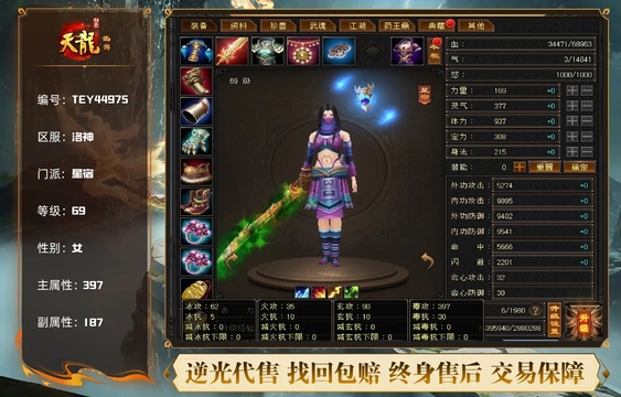 【TEY44975】 | 星宿 | 等级:69 | 主属性:397 | 副属性:187 | 女 | 主毒攻