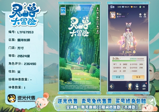 【LTF67953】 | 仙器:4 | 神兽数量:1 | 珍兽数量:2 | 角色评分:236490 | 等级:2转24级 | 方寸 | 女 | 孙悟空 | 貔貅,龙马