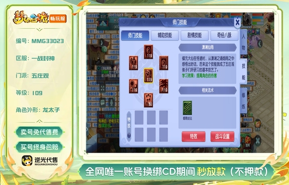总经验:6000万 | 等级:109 | 五庄观,普陀山 | 无换绑CD | 无绿通 | 男 | 【逆光代售卖号0手续费】【买号找回永久包赔】