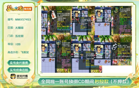 等级:109 | 五庄观,普陀山 | 无换绑CD | 30天尊享特权 | 女 | 【逆光代售卖号0手续费】【买号找回永久包赔】
