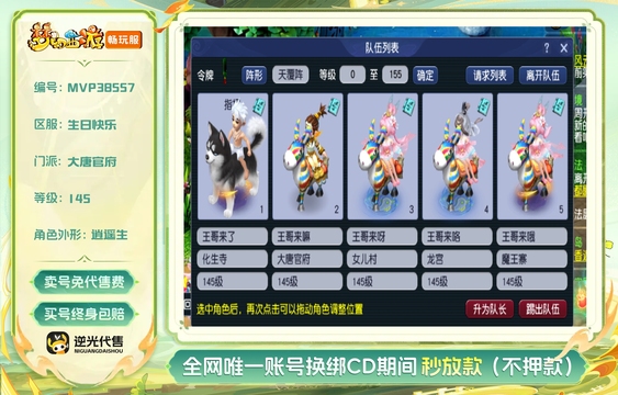 总经验:490000万 | 等级:155 | 天宫 | 无换绑CD | 180天尊享特权 | 男 | 【逆光代售卖号0手续费】【买号找回永久包赔】