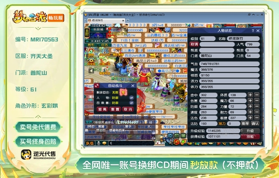 等级:61 | 普陀山 | 无换绑CD | 180天尊享特权 | 女 | 【逆光代售卖号0手续费】【买号找回永久包赔】