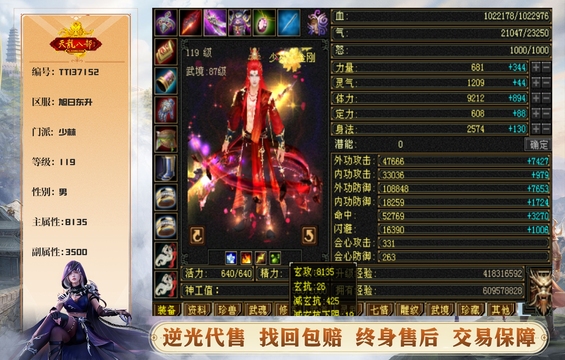 少林 | 等级:119 | 主属性:8135 | 副属性:3500 | 男 | 主玄攻 | VIP4 | 畅游账号
