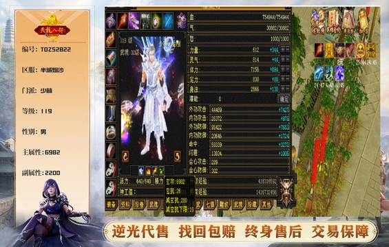 少林 | 等级:119 | 主属性:6982 | 副属性:2200 | 男 | 主玄攻 | VIP4 | 畅游账号
