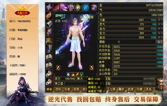 天山 | 等级:119 | 主属性:7081 | 副属性:1940 | 男 | 主冰攻 | VIP5 | 畅游账号
