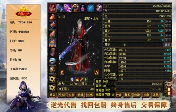 星宿 | 等级:89 | 主属性:5060 | 副属性:1300 | 男 | 主毒攻 | VIP5 | 畅游账号