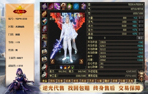 峨嵋 | 等级:119 | 主属性:4348 | 副属性:804 | 男 | 主玄攻 | VIP6 | qq账号