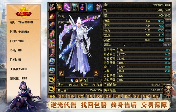 【TUW23949】 | 少林 | 等级:89 | 主属性:5009 | 副属性:1292 | 男