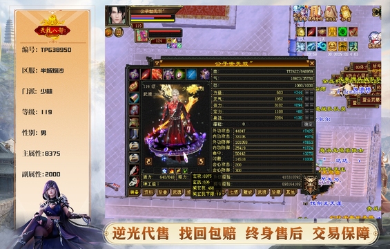 【TPG38950】 | 少林 | 等级:119 | 主属性:8375 | 副属性:2000 | 男 | VIP5 | 畅游账号