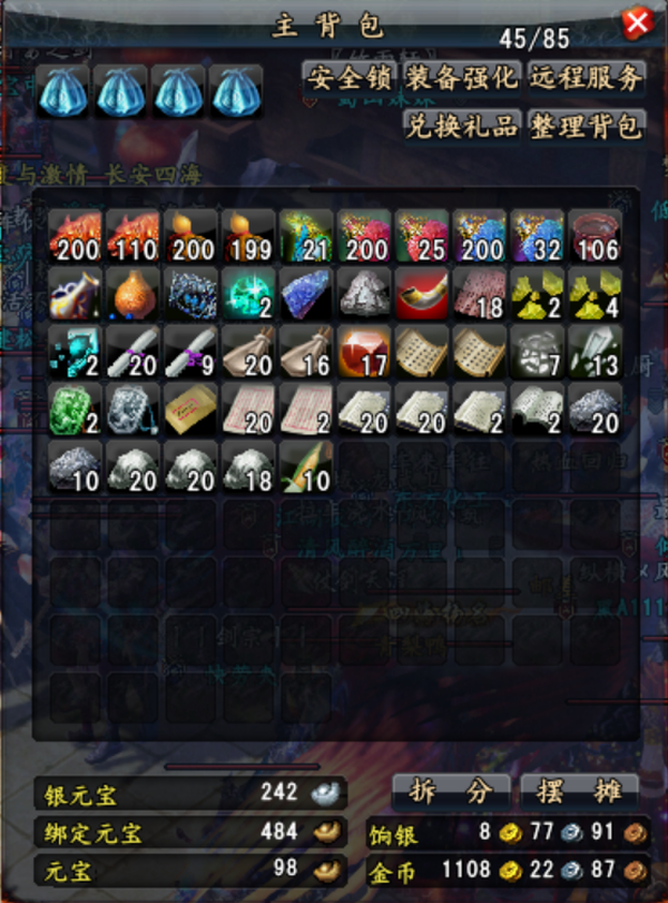 12套2级金装 10冒毒奶 明镜套 50牌子还有30多战功5W 1100金币