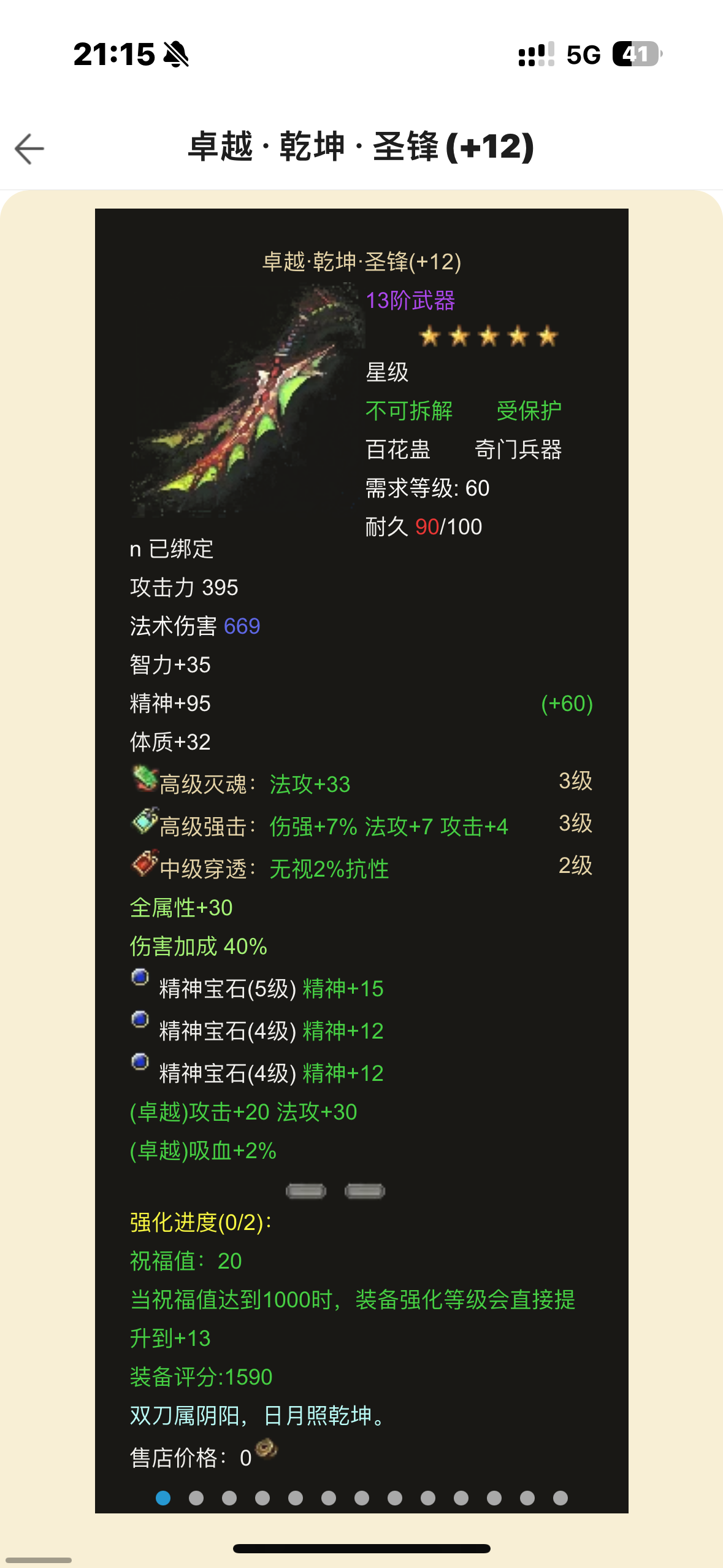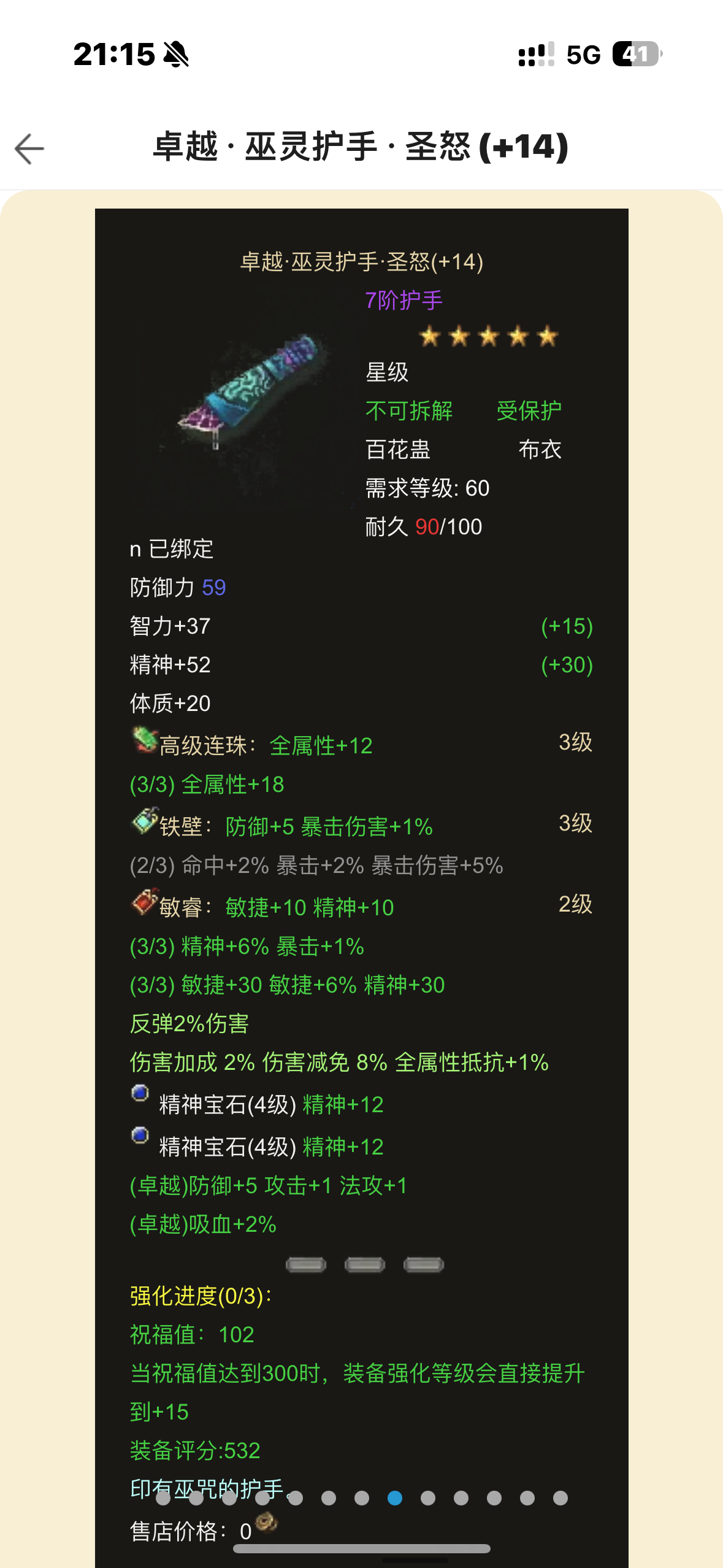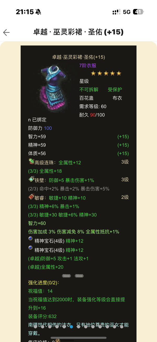 8100分毒奶,防具2件15,剩下14,武器12