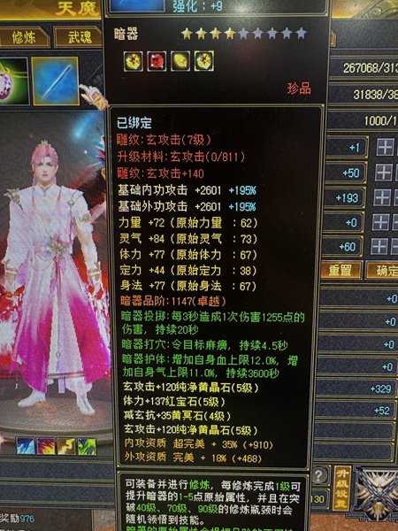 可小刀,打人巨痛平推1.1-1.3之间,技能1.2-1.6,902大完美武魂,成品附体和成品5360的pk打架宝宝,修炼第一梯队,心法俩本100其他90多。买完直接上号就是干