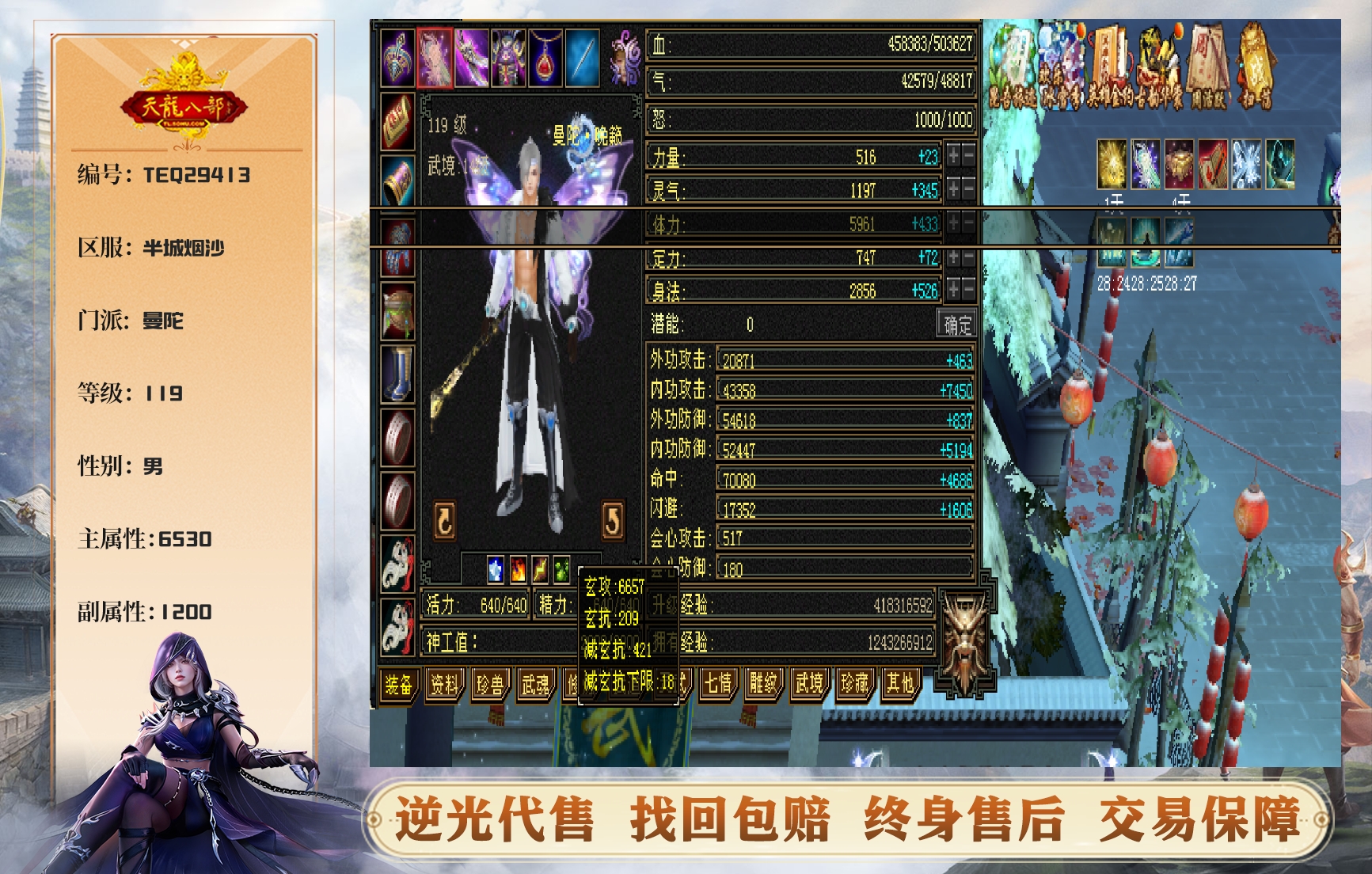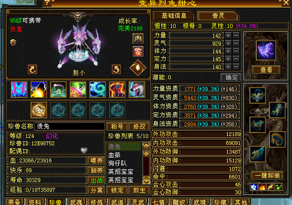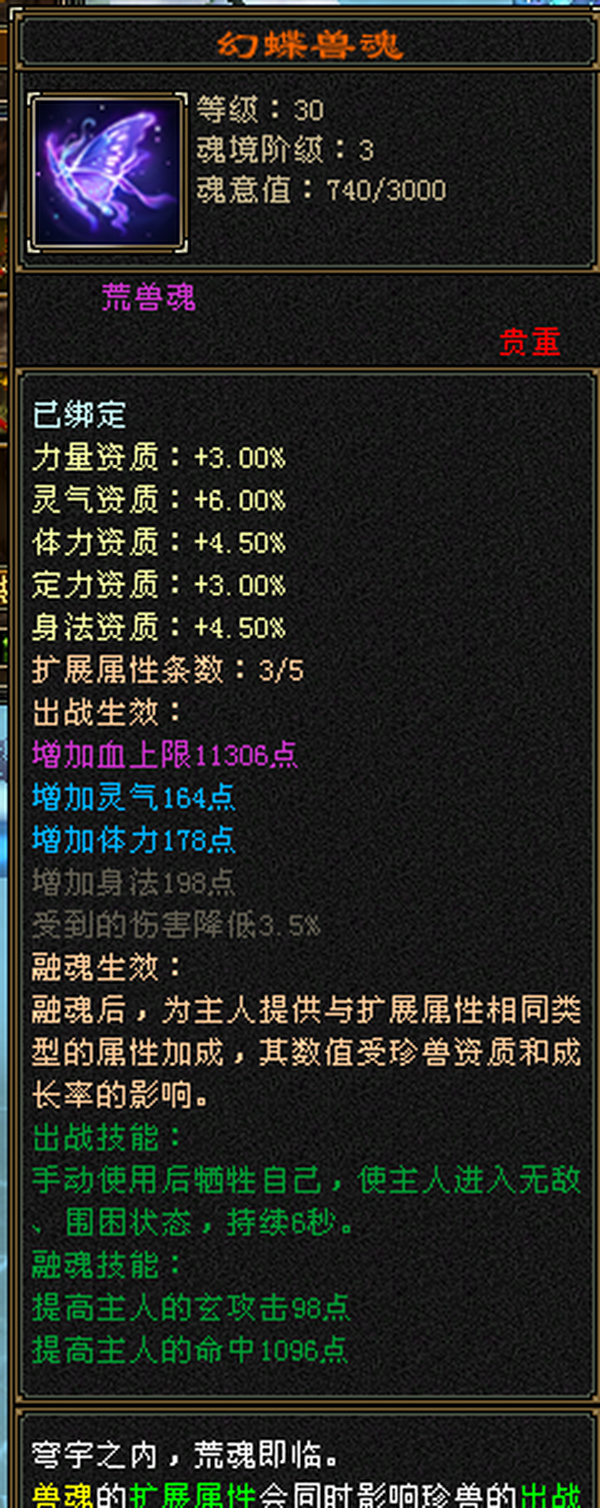 退游!!4抗身法,高命中,高会心,荒兽有5紫符,最便宜的6级号,很肉的曼陀。