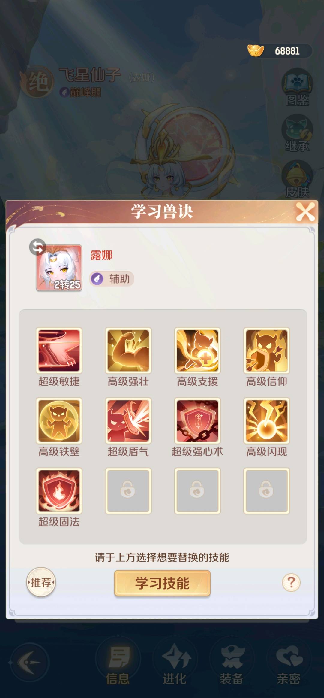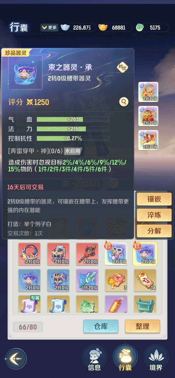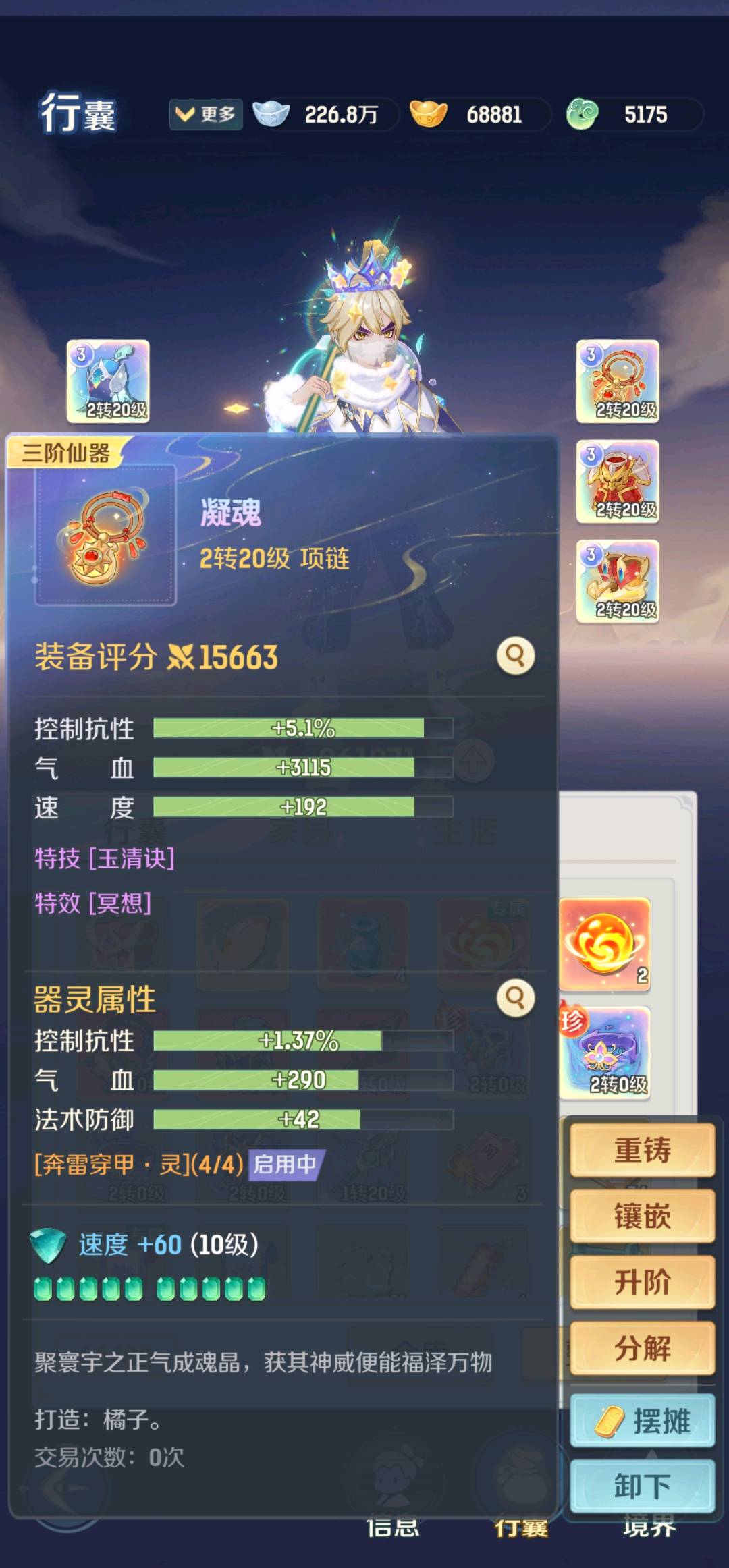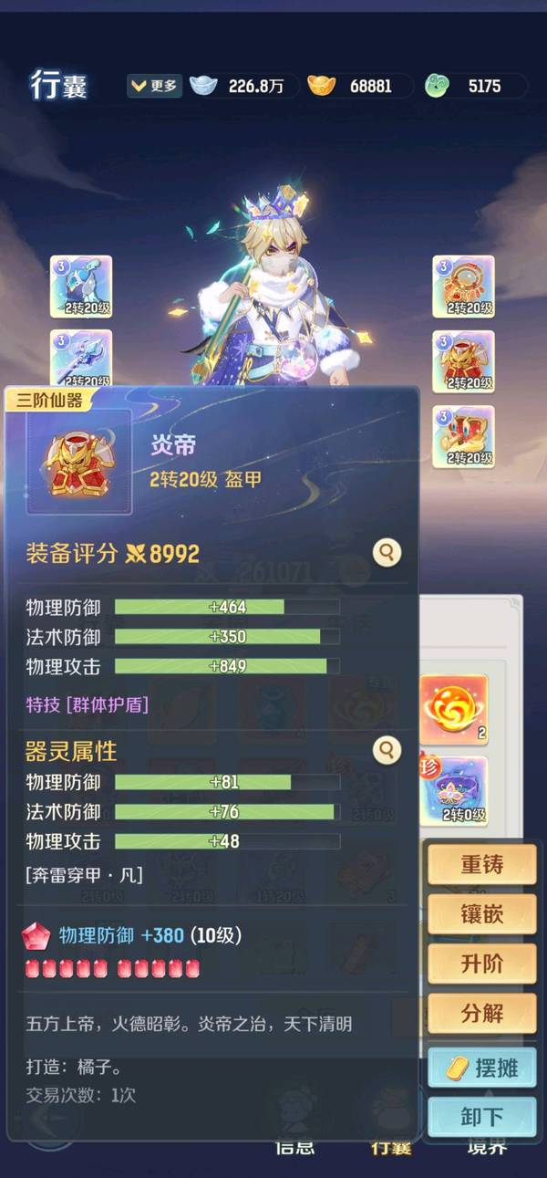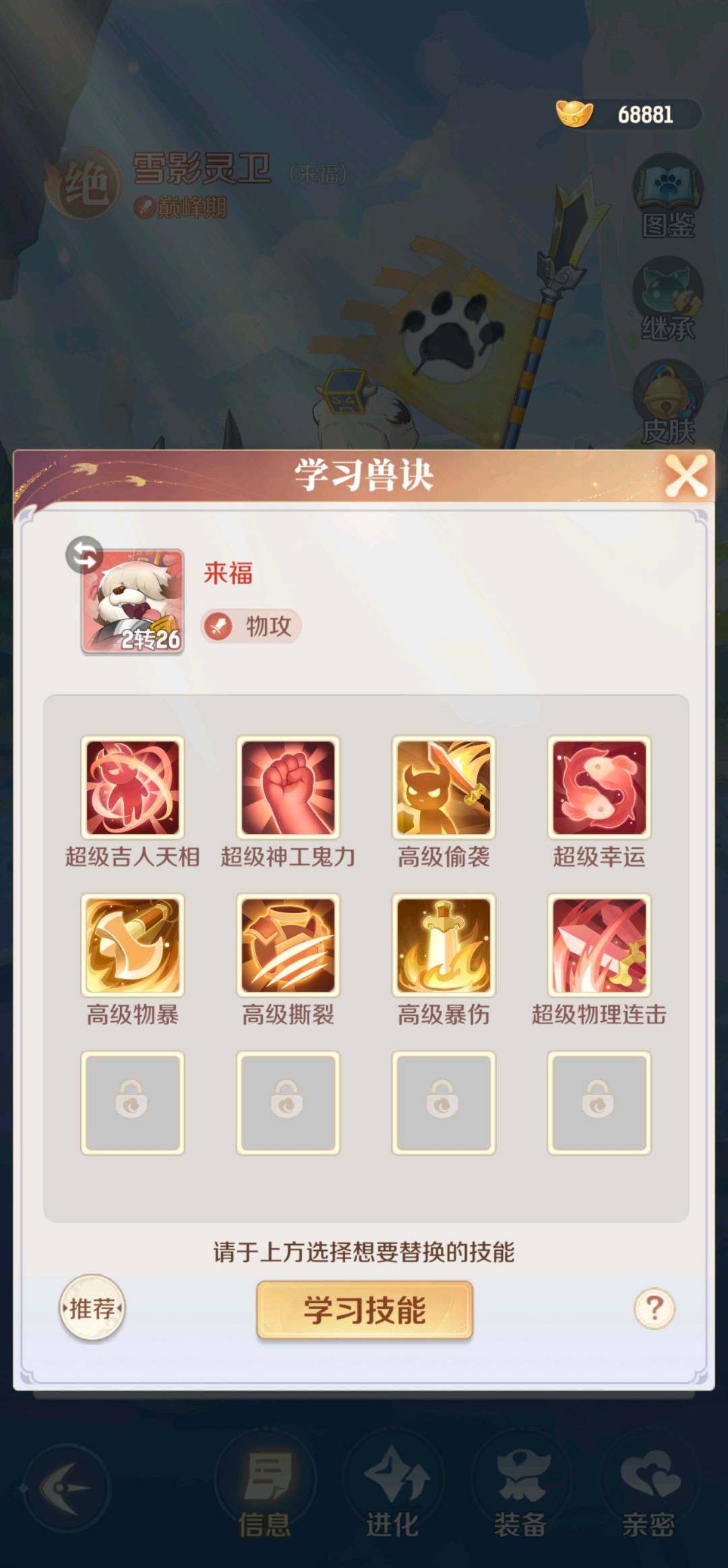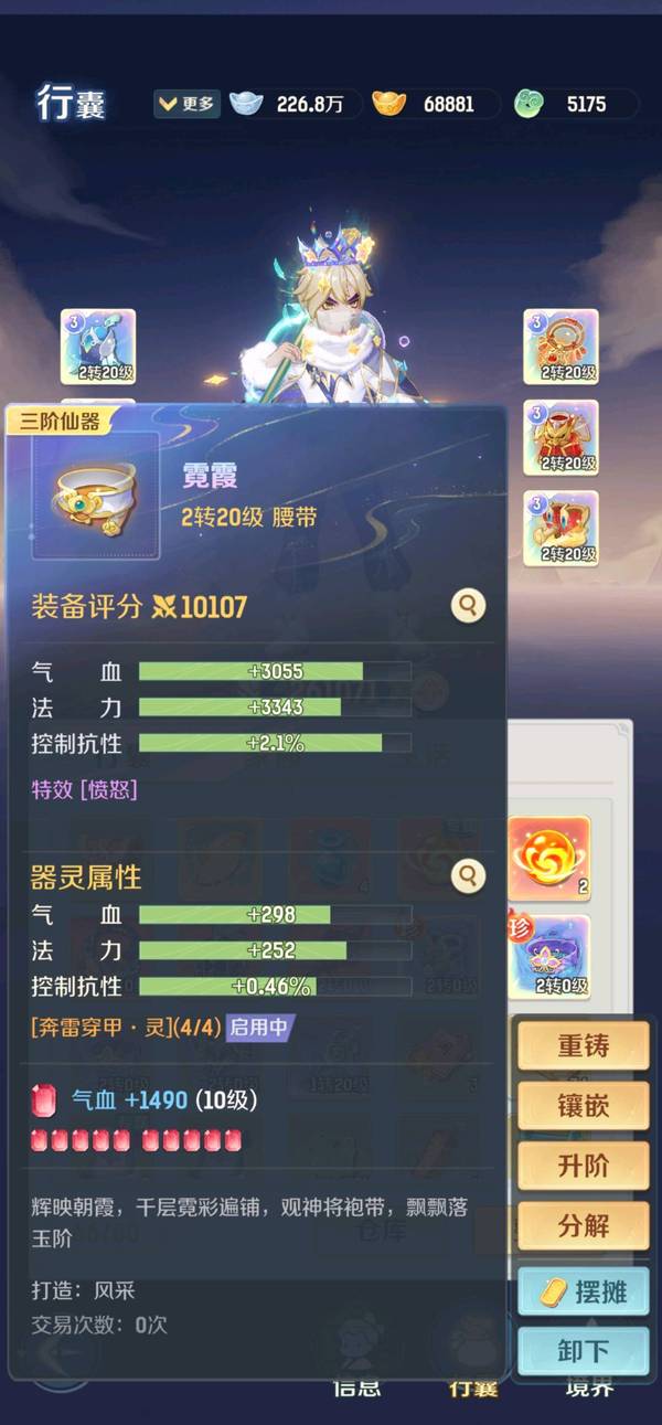 还有48万如意点,区第一蛮子。三神满三阶套装备毕业,4套成品物理暴击毕业心法,4件套器灵,6件套也有两件。满觉醒成品9技能老虎,寒星仙子,8技能狗,寒星,鹿7技能蛇 一共10个觉醒好的宝宝。该买的都买了,上手直接玩什么都不用买,细节拉满。