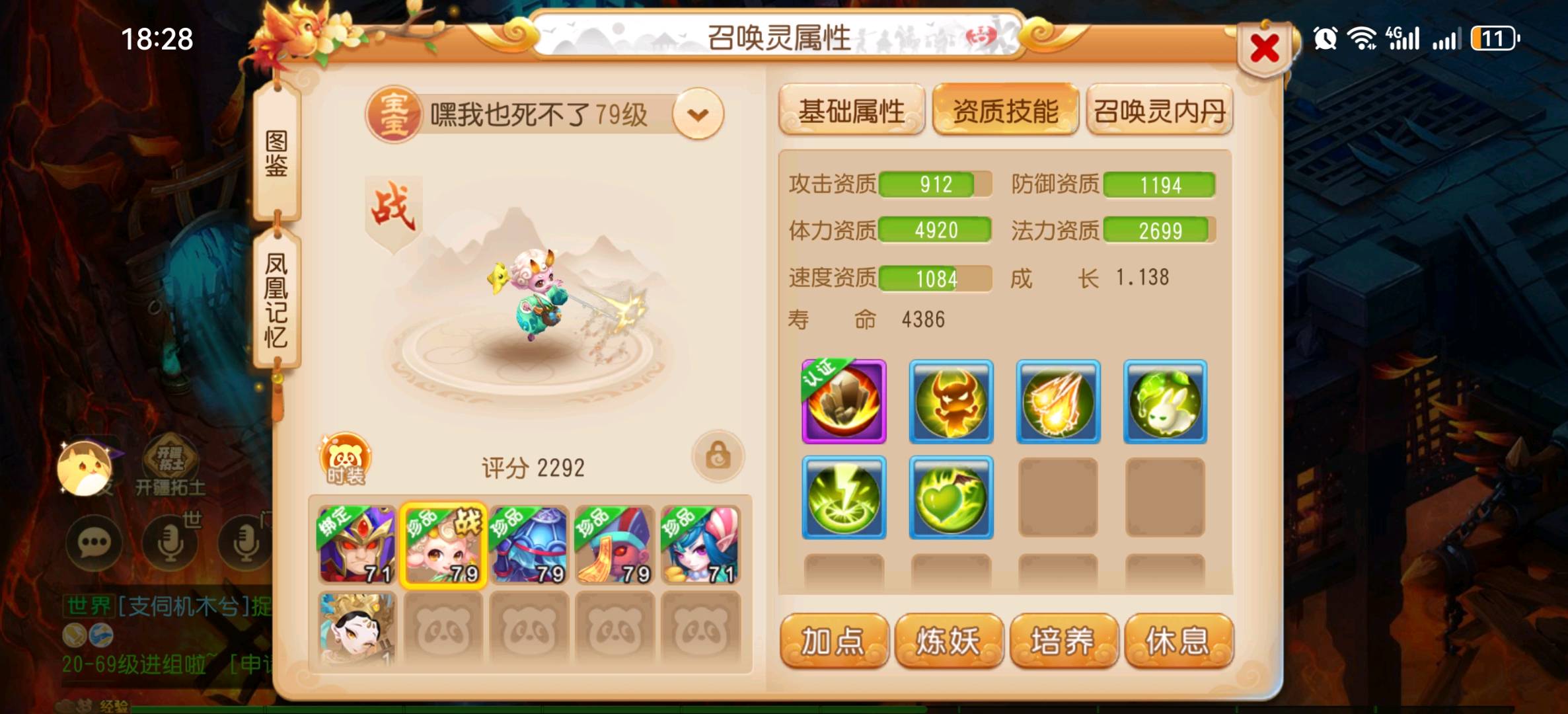 完美进度号 打难度打架都满足 宝宝法 千 配 龟都有 满伤忽视项链 忽视特技头盔 敏魔忽视衣服 4红配速僵尸 日常宠都有够用 经脉马上开第11丹 这周648箱子没开 银币够开11丹 武器有很大提升空间 一直没换武器法伤还能提