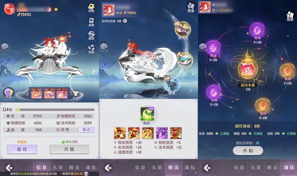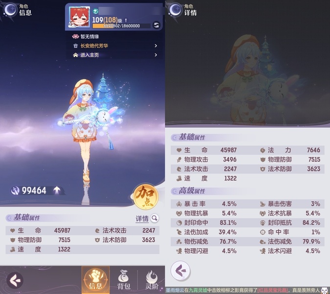 【CGH36821】 | 226227 | 等级:109 | 神兽数:3 | 104735 | 430426 | 角色评分:99464 | 颜值:15034 | 倾天四 | 法宝颜色统计:10红0蓝 | 古灵 | 离火苍龙、九春韶华、玉兔月赏、淬金曜蚀、乘波踏浪、山君现、碎梦语情、炙烤大串、一刹雷鸣、墨染尘烟、星河揽月 | 飞天笔、祥云、兔球、海月璃梦、蟹有钳、钱多多、万海真君、通明心剑、焚天火凤、招财进喵、乘风入梦、飞起来·壹号、风驰电掣、凤蝶·梦浮生、跃龙门 | 蝶恋芳菲 | 望月、苍辰、孙悟空【买号找回永久包赔】