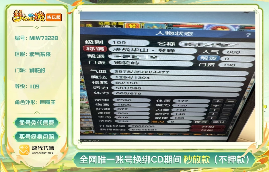 109暴力狮驼岭,pk 华山 剑会,高伤武器,9e全红鬼将,全红龟速,人修满,宝宝功法17双抗10,销量锦衣祥瑞,持续更新,工作原因没时间玩了,可空号
