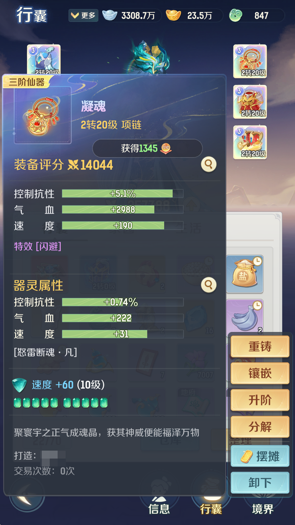 3阶套,4件奔雷器灵套,如意1.5,金票2500