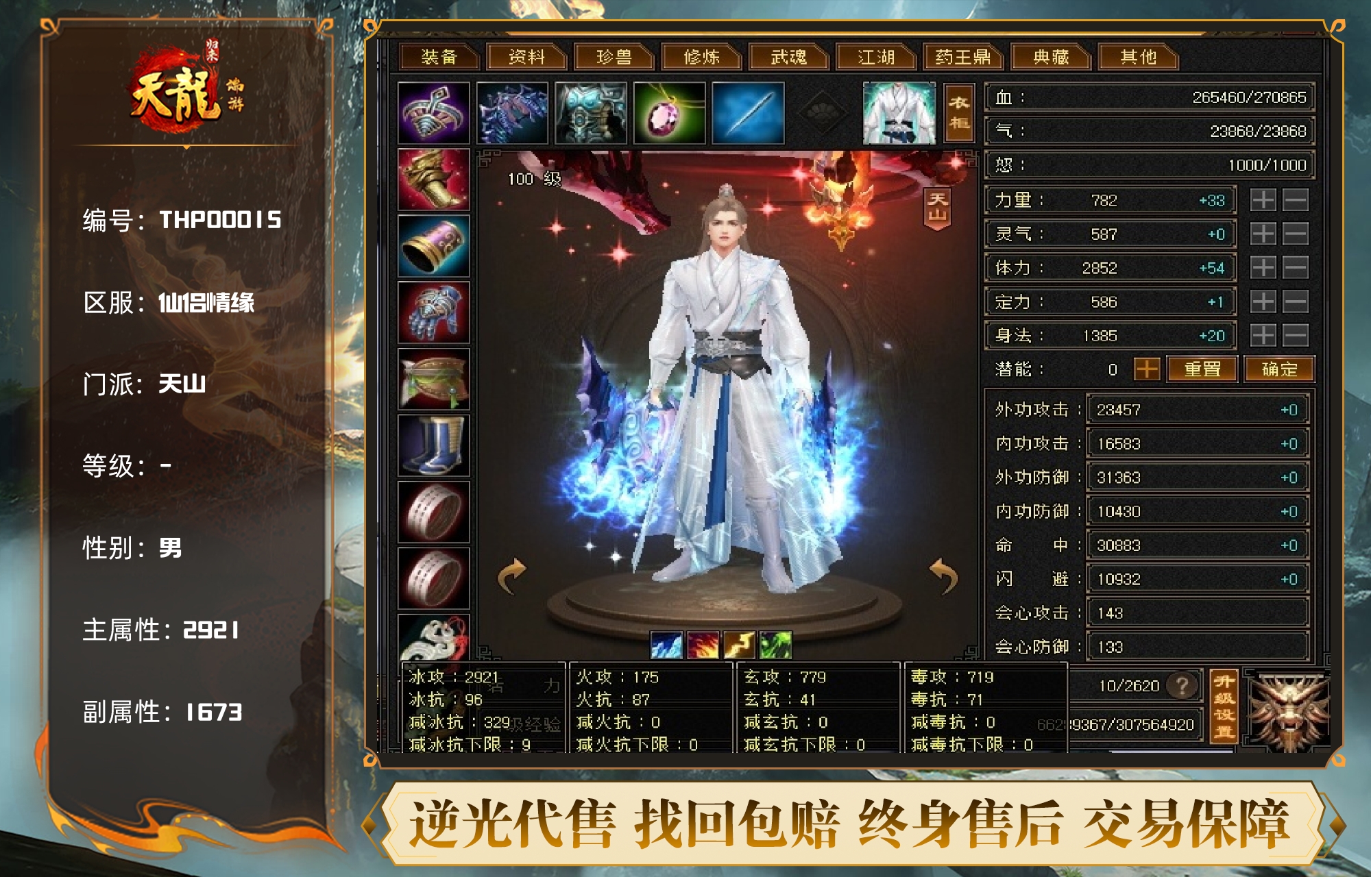 三十附体游龙,满四减三修天山,高命中,高闪避,对比同价位,打人七千。可秒五级号。