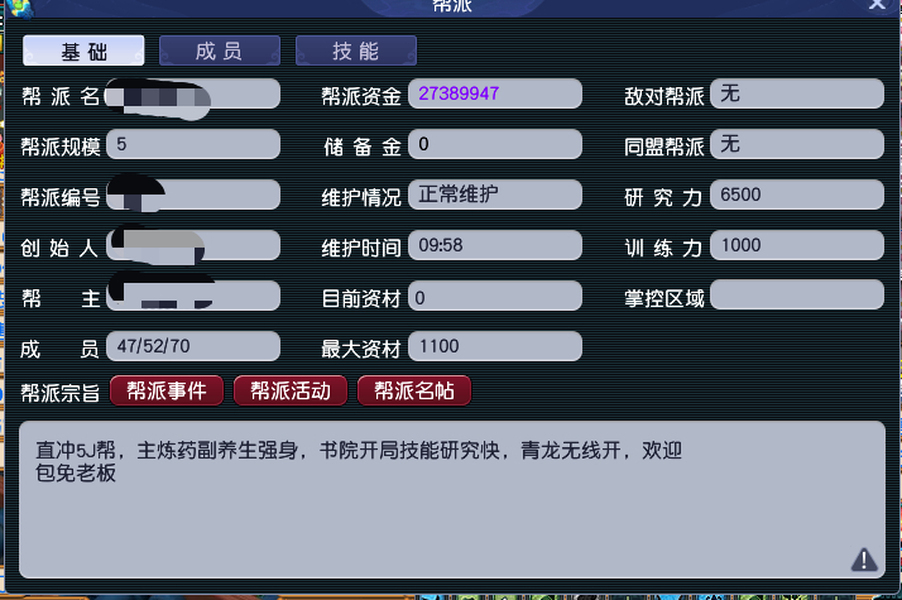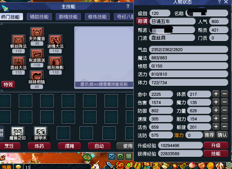 125满修细节盘丝帮主号(送个5J帮派,帮派花了8000左右),号可接环赚钱,送图里所有装备,有赚钱技能100炼药(出一次秘方都几千万),70打造。有飞行坐骑,挂机混队很爽。仓库什么都不清,买到就是赚到!诚心卖!可小刀!