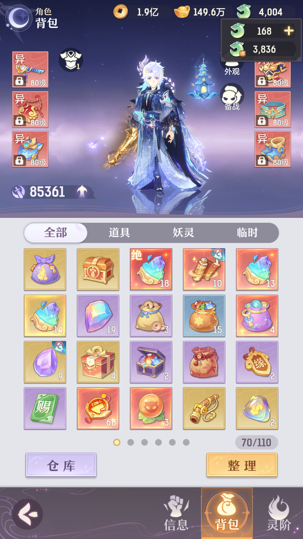 星火16强2次,32强,64强几次,24宠物12神资质丹吃满全共鸣,12绝世,宝宝超一线,卖个颜值和宝宝钱,所有宝宝全皮肤,多个典藏。灵宝坐骑法宝都已经毕业,灵宝属性基本完成。天衍属性随便洗洗就毕业了。装备特技齐全,属性比90垃圾逍遥更好。诚心小刀来,到处挑毛病就别来了谢谢,诚心还价秒同意。