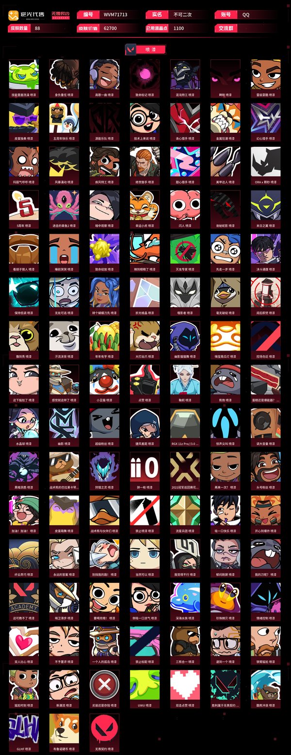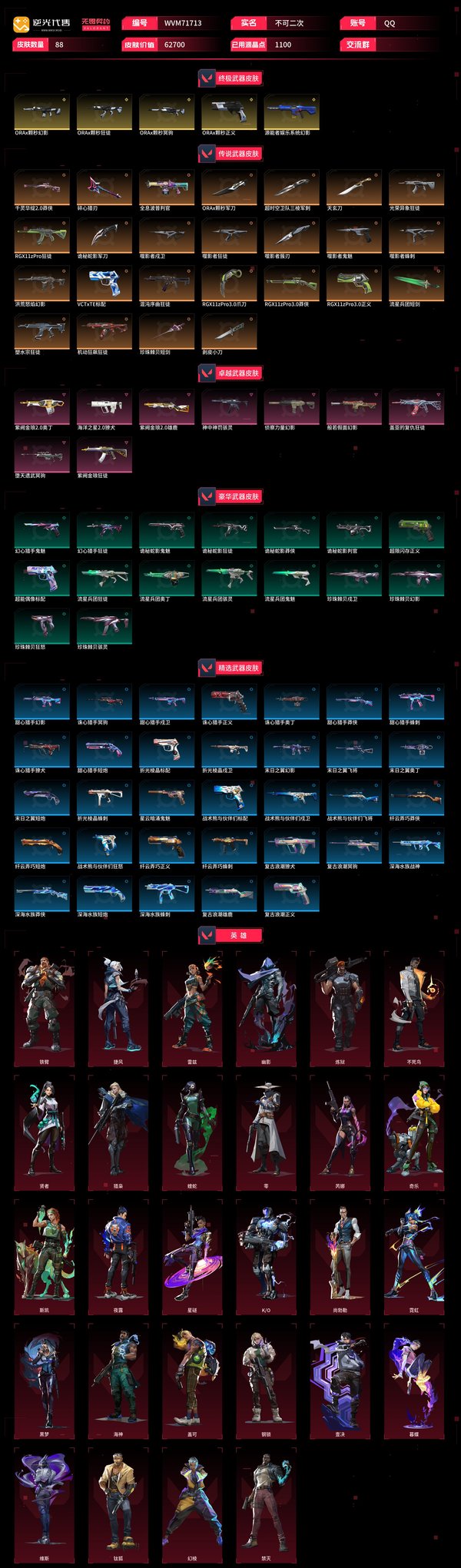 【WVM71713】 | 卓越武器数量:9 | 皮肤资产价值:62700 | 传奇武器数量:25 | 终极武器数量:5 | 诛心猎手奥丁、流星兵团奥丁、末日之翼奥丁、紫阙金琅2.0奥丁 | 珍珠棘贝狂怒、战术熊与伙伴们狂怒 | 紫阙金琅2.0雄鹿、复古浪潮雄鹿 | 深海水族蜂刺、噬影者蜂刺、甜心猎手蜂刺、纤云弄巧蜂刺、折光棱晶蜂刺 | 深海水族战神 | 诡秘蛇影鬼魅、噬影者鬼魅、幻心猎手鬼魅、星云暗涌鬼魅、流星兵团鬼魅 | 末日之翼飞将、战术熊与伙伴们飞将 | 堕天遗武冥驹、诛心猎手冥驹、ORAx颗秒冥驹、复古浪潮冥驹 | 流星兵团骇灵、神中神罚骇灵、珍珠棘贝骇灵 | RGX11zPro3.0莽侠、千灵华绽2.0莽侠、甜心猎手莽侠、纤云弄巧莽侠、深海水族莽侠、诡秘蛇影莽侠 | 盖亚的复仇狂徒、ORAx颗秒狂徒、紫阙金琅狂徒、诡秘蛇影狂徒、噬影者狂徒、幻心猎手狂徒、光荣异象狂徒、塑水宗狂徒、机动狂飙狂徒、混沌序曲狂徒、RGX11zPro狂徒、流星兵团狂徒 | 超时空卫队三棱军刺、珍珠棘贝短剑、RGX11zPro3.0爪刀、诡秘蛇影军刀、噬影者簇刃、剥皮小刀、ORAx颗秒军刀、天玄刀、流星兵团短剑 | 甜心猎手戍卫、折光棱晶戍卫、战术熊与伙伴们戍卫、噬影者戍卫、珍珠棘贝戍卫 | 禁灭、暮蝶、星礈、钛狐、蝰蛇、K/O、海神、钢锁、壹决、猎枭、霓虹、盖可、夜露、幻棱、幽影、奇乐、不死鸟、黑梦、斯凯、尚勃勒、贤者、雷兹、铁臂、维斯、零、炼狱、捷风、芮娜 | 诡秘蛇影判官、全息波普判官 | 超限闪存正义、RGX11zPro3.0正义、复古浪潮正义、诛心猎手正义、纤云弄巧正义、ORAx颗秒正义 | 珍珠棘贝幻影、源能者娱乐系统幻影、般若假面幻影、侦察力量幻影、甜心猎手幻影、末日之翼幻影、洪荒怒焰幻影、ORAx颗秒幻影 | 末日之翼短炮、深海水族短炮、甜心猎手短炮、纤云弄巧短炮 | 复古浪潮獠犬、诛心猎手獠犬、海洋之星2.0獠犬【买号找回永久包赔】