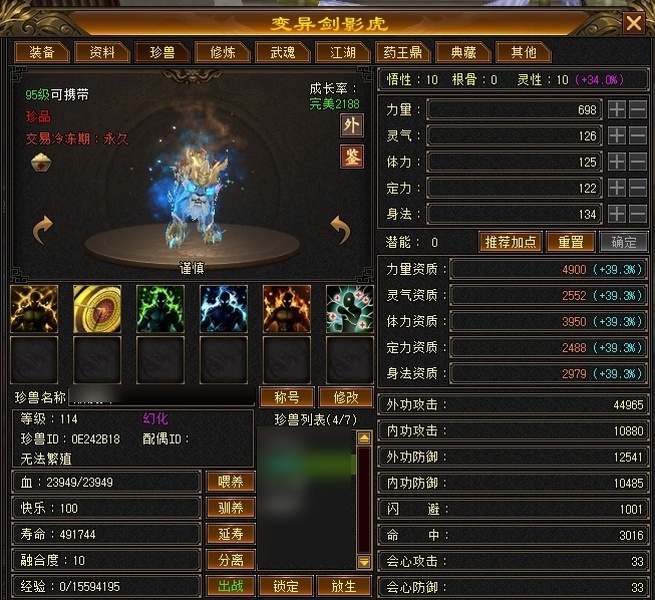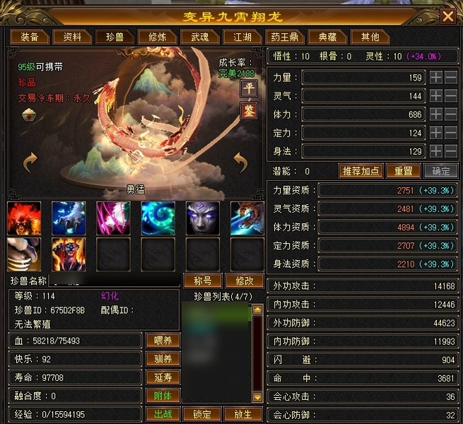 全区第一高副属性天龙,打人嘎嘎疼,天雕满,6带5石头,4级幻视,高心法典藏。