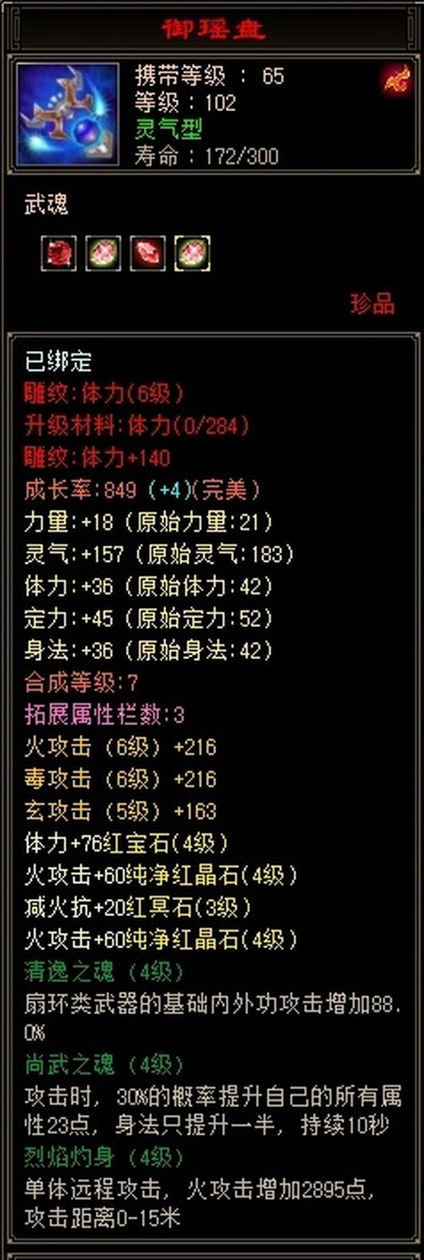 【TYE56396】 | 逍遥 | 等级:102 | 主属性:2468 | 副属性:1097 | 男 | 主火攻