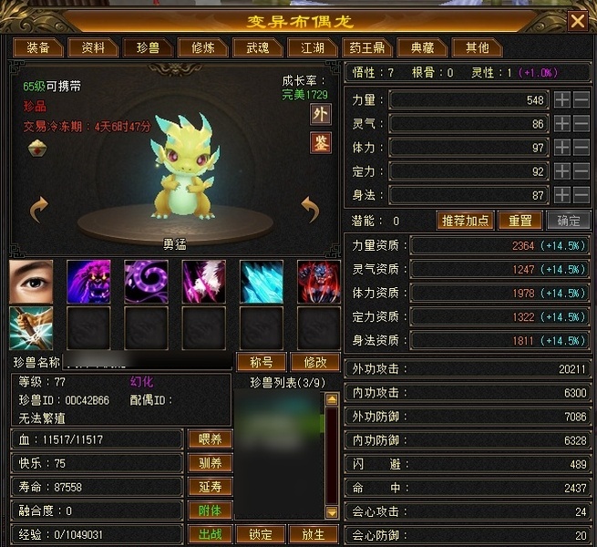 总属性4000+,卡69级天龙,有三十附体,完美7技能武魂,可刷任何活动,接手无需投资!畅易阁未实名认证,买过去你就是第一任!补充截图里有截图,持续更新到月底,转门派2月5号上线!别打电话了,这就是最低价了!