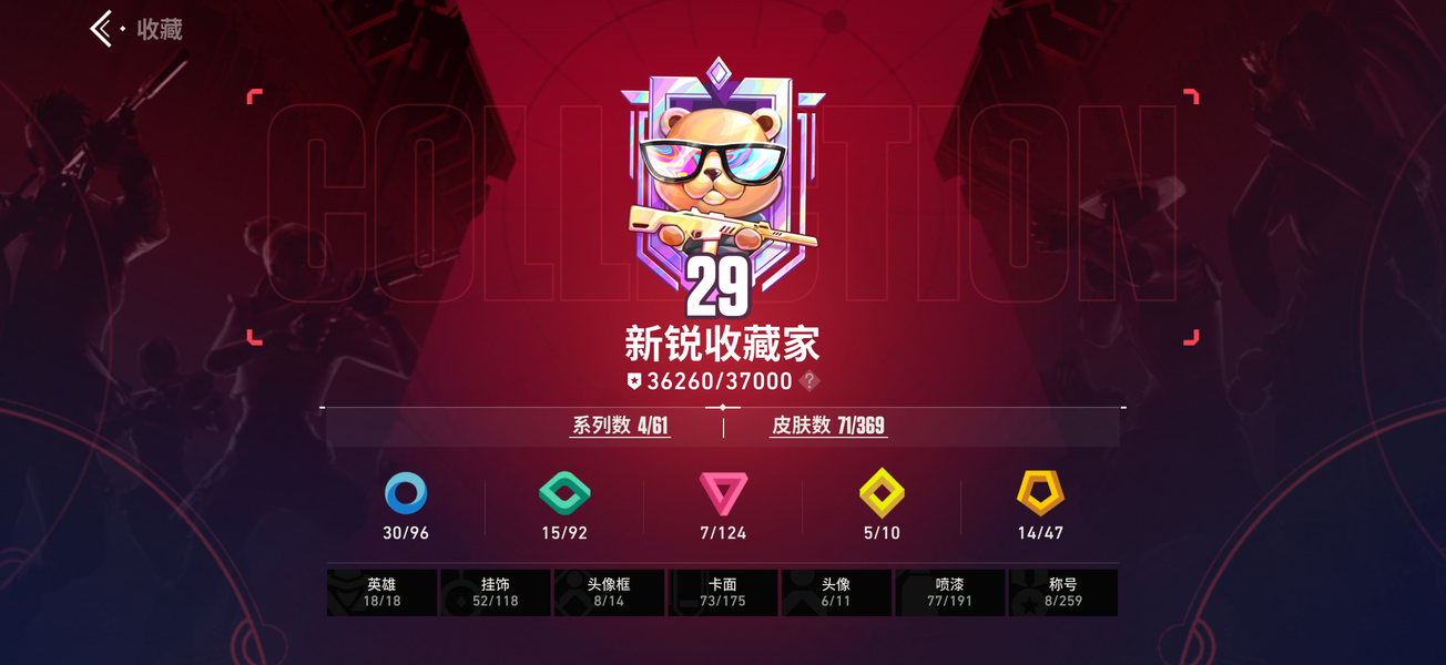 无畏契约:源能行动成品号瓦手 皮肤多,收藏家29级,系列4/61,皮肤7/124 品质14传奇,5终结,7卓越,15稀有 VCT爪刀、艾沃莉的梦之翼、堕天遗武、醒狮幻影、离子幻影、光明哨兵狂徒全套 账号安全,安卓苹果都能用 价格可聊,欢迎老板咨询可刀