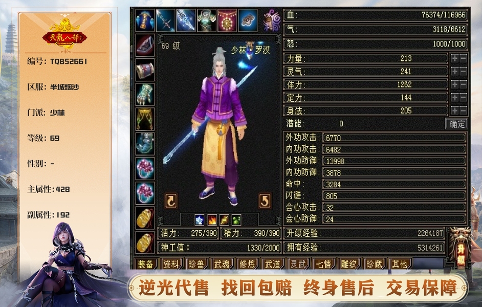 少林 | 等级:69 | 主属性:428 | 副属性:192 | 主玄攻 | VIP0 | 畅游账号