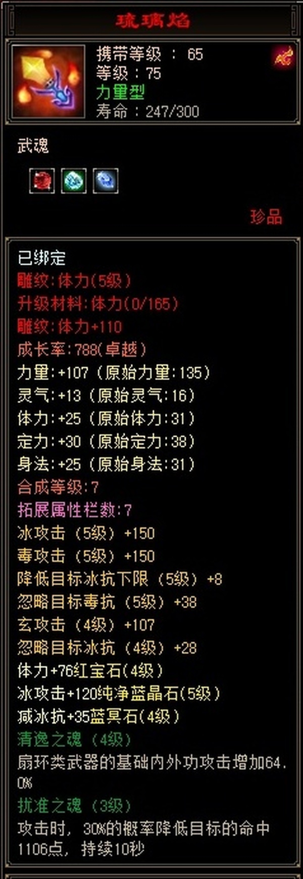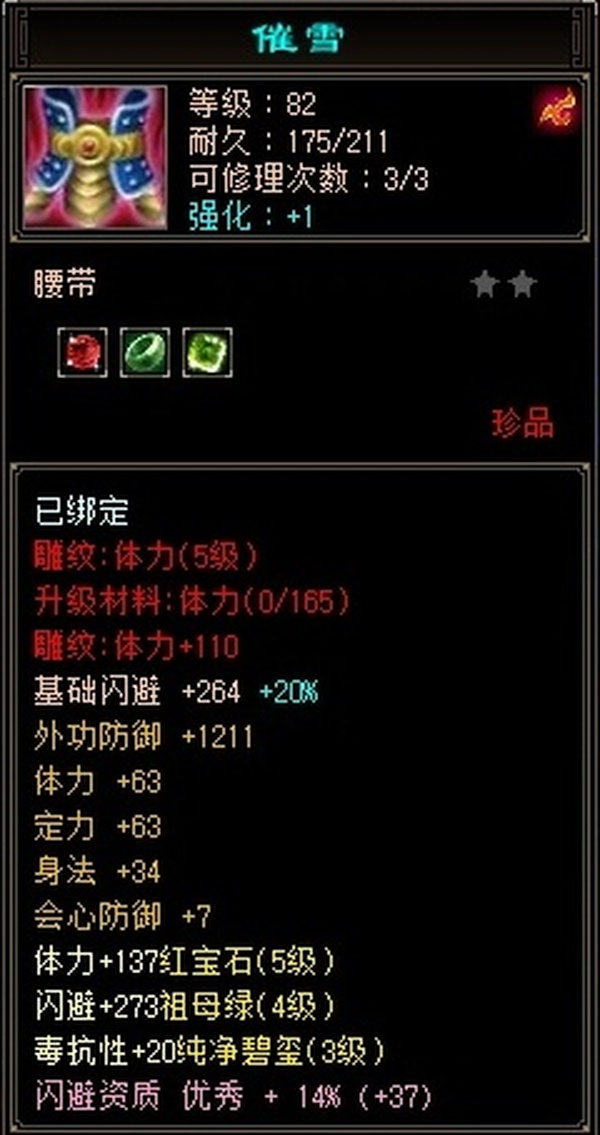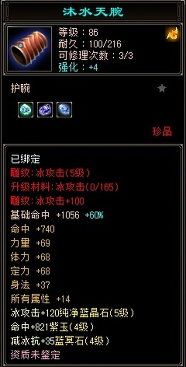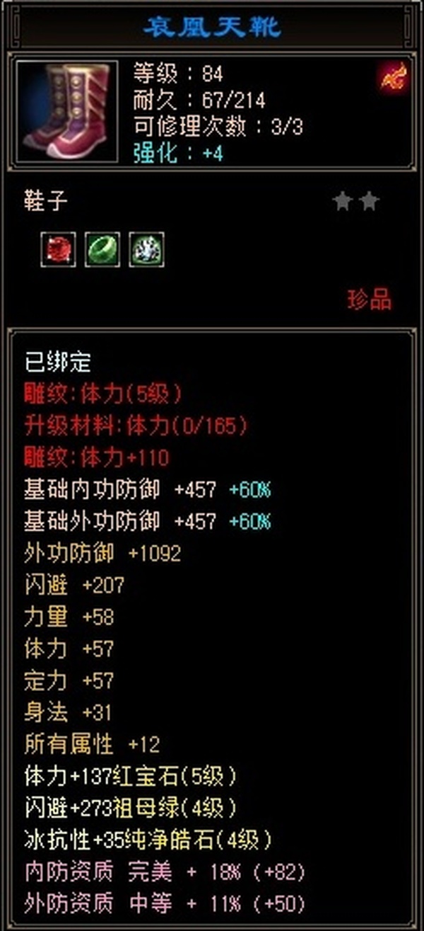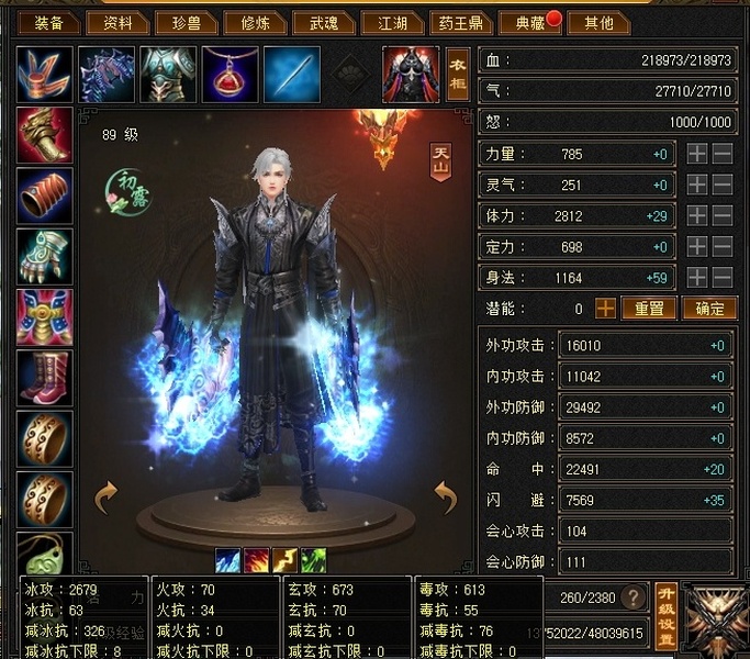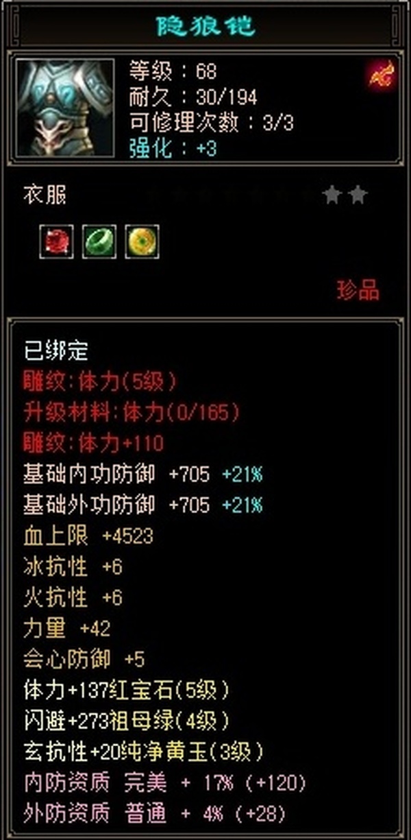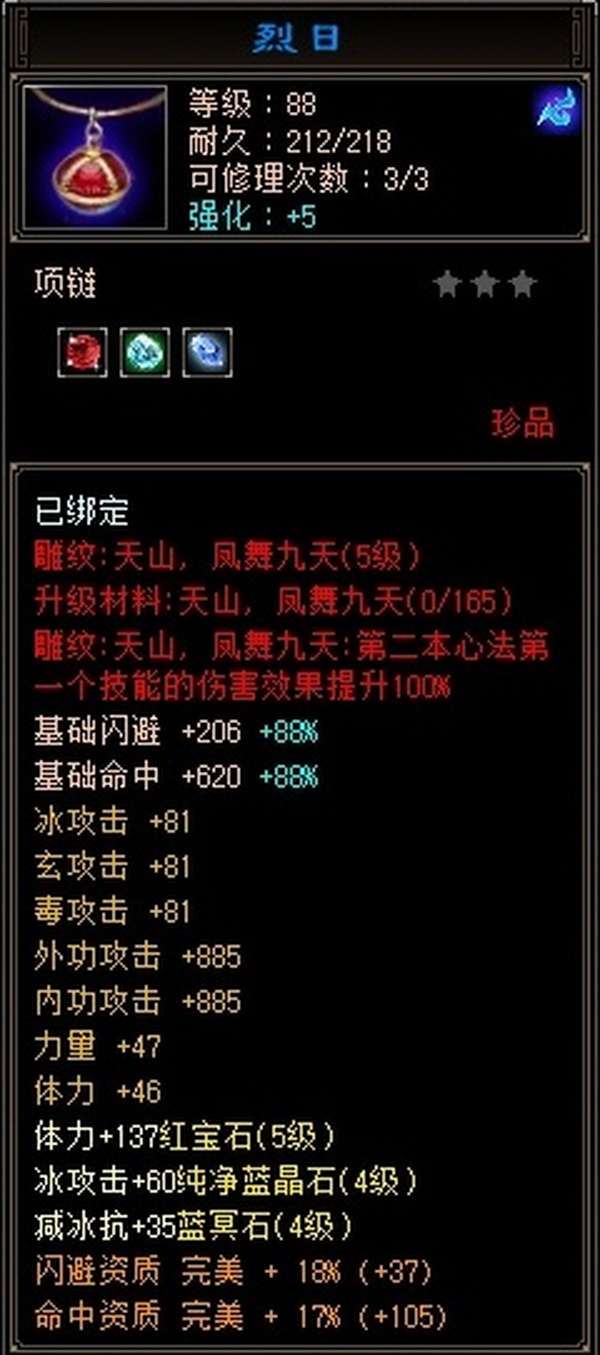 极限544天山满五雕 四套抗 冰抗四级 更新至23w血 2.5命中8.5闪避 换一下衣服帽子手套随便25w血
