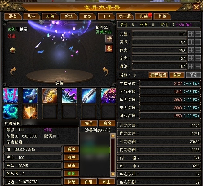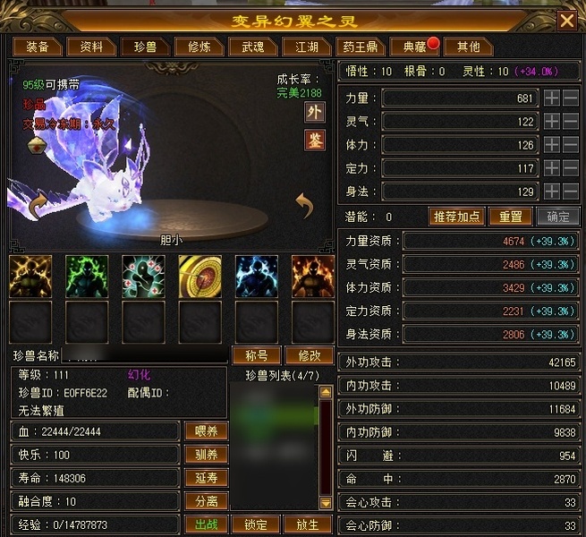 一手号,35.5W血,主属3900,附属2100,命中42000,带高资质30附体,BB齐全,赠改名卡,付费图鉴都有,修炼一天没落,上手即玩,消费2.6W,2.3折出
